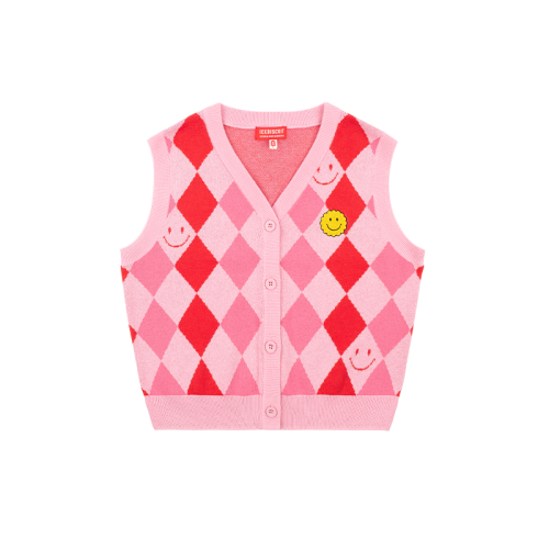 아이스비스킷만의 유니크한 올오버 스마일 아가일 디테일이 돋보이는 스웨터 베스트입니다.