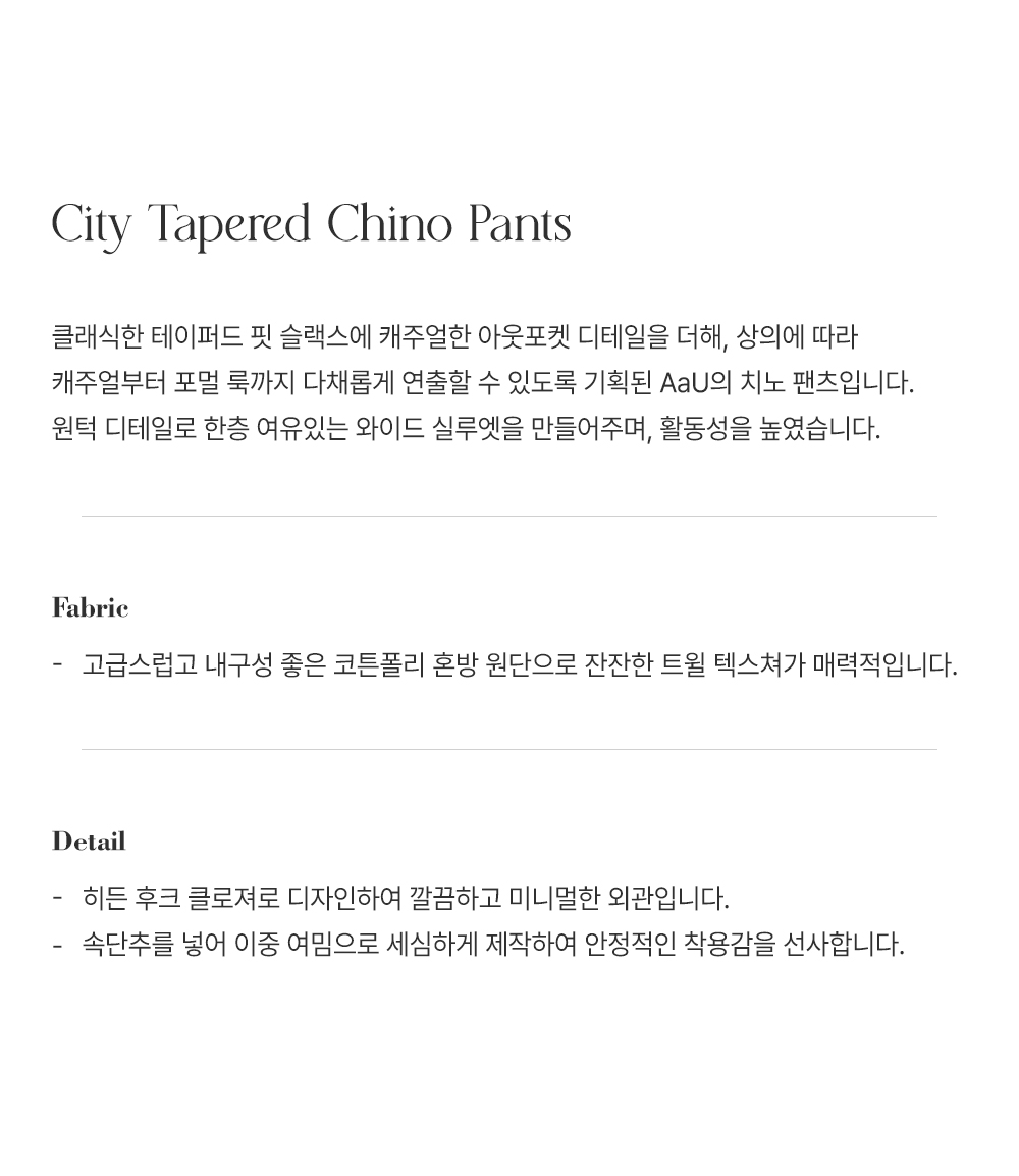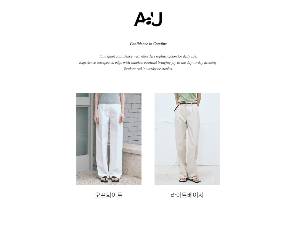 에이에이유(AAU)는 당신의 모든 것을 위한, 당신에게 집중하는 브랜드로 내 몸에 맞춘 듯한 편안함과 격식에 구애받지 않는 데일리 아이템으로 일상에 한 포인트의 멋을 더하는 브랜드입니다.