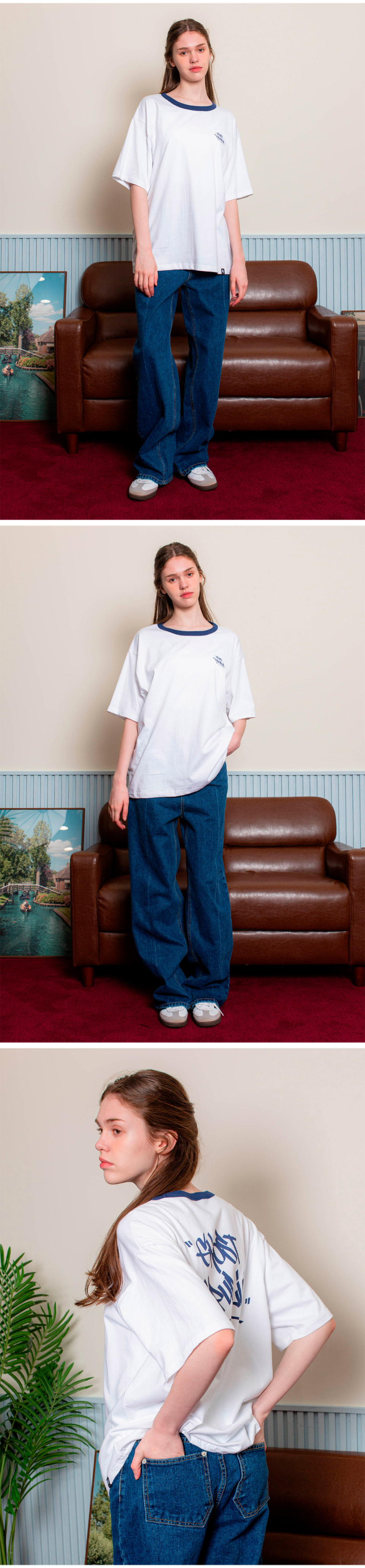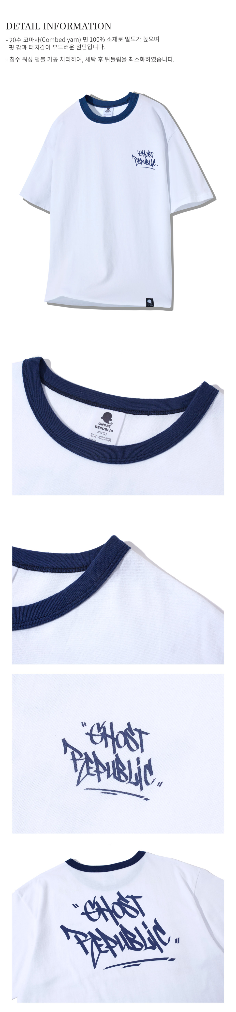 스트릿 오버핏 반팔 티셔츠 GT-367_화이트(블루)