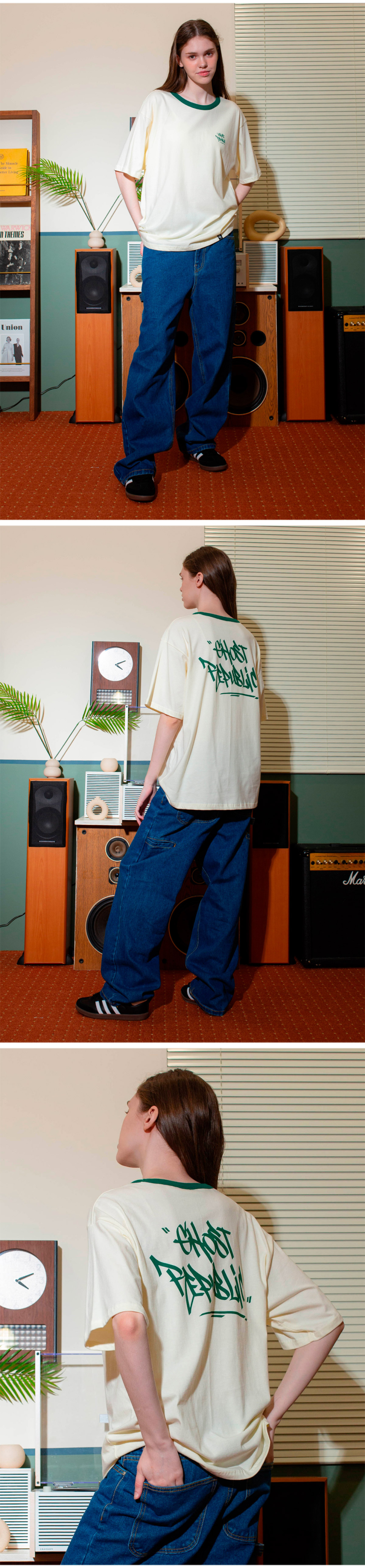 스트릿 오버핏 반팔 티셔츠 GT-367_크림(그린)