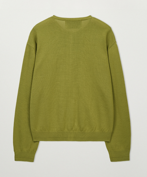로렌 베이직 크루넥 파인 가디건 올리브 그린