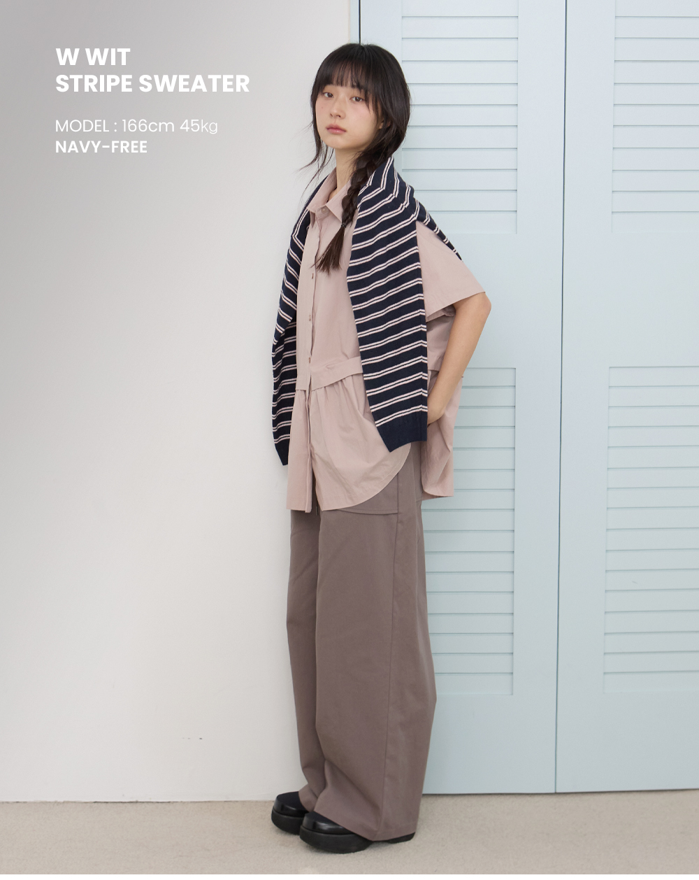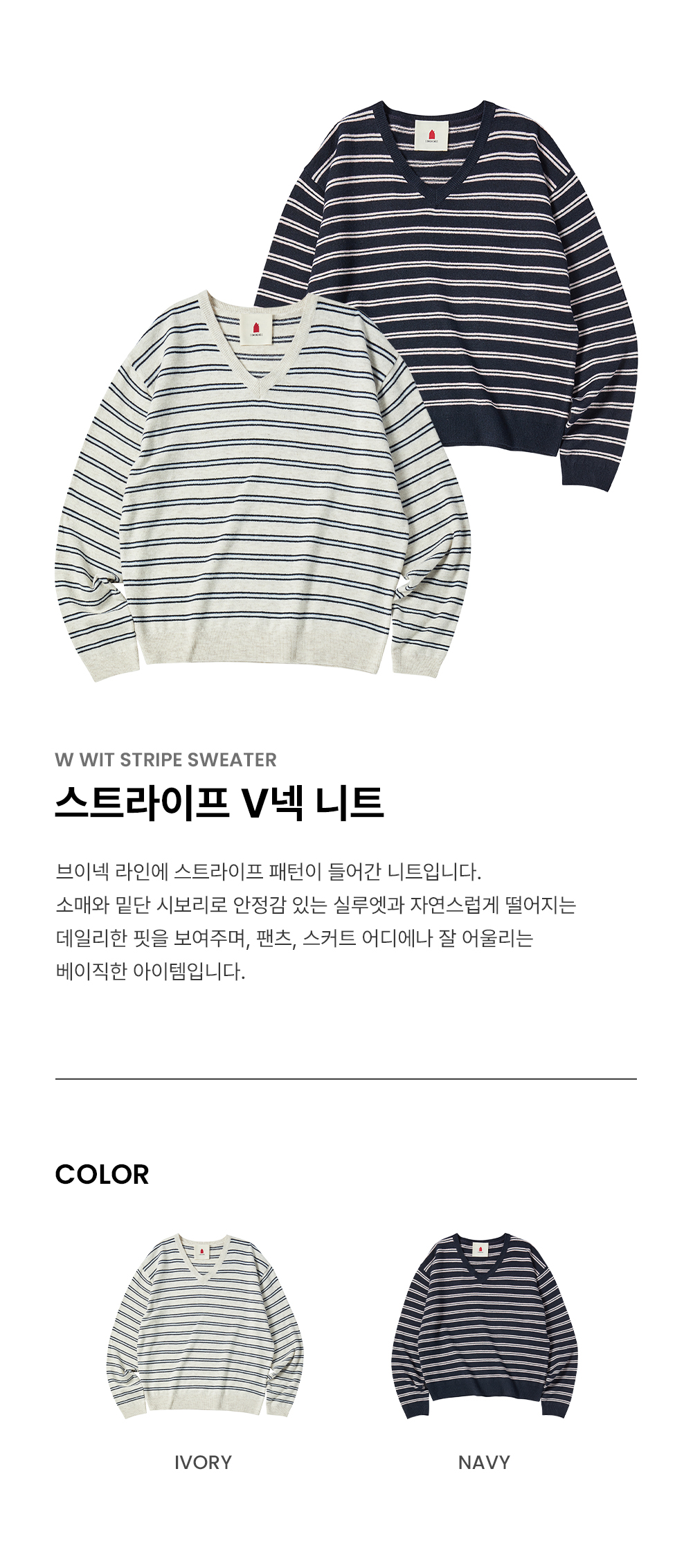W WIT STRIPE SWEATER [IVORY]