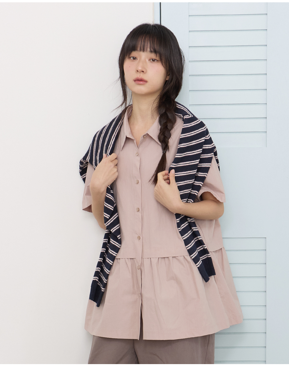 W BUTTON CROP PULLOVER [SKY BLUE]