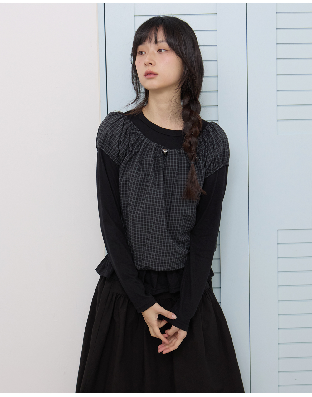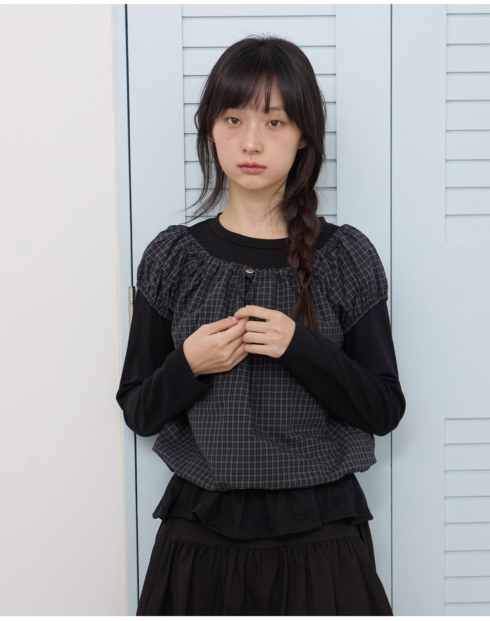 LACE NECK BUTTON LONG SLEEVE OATMEAL