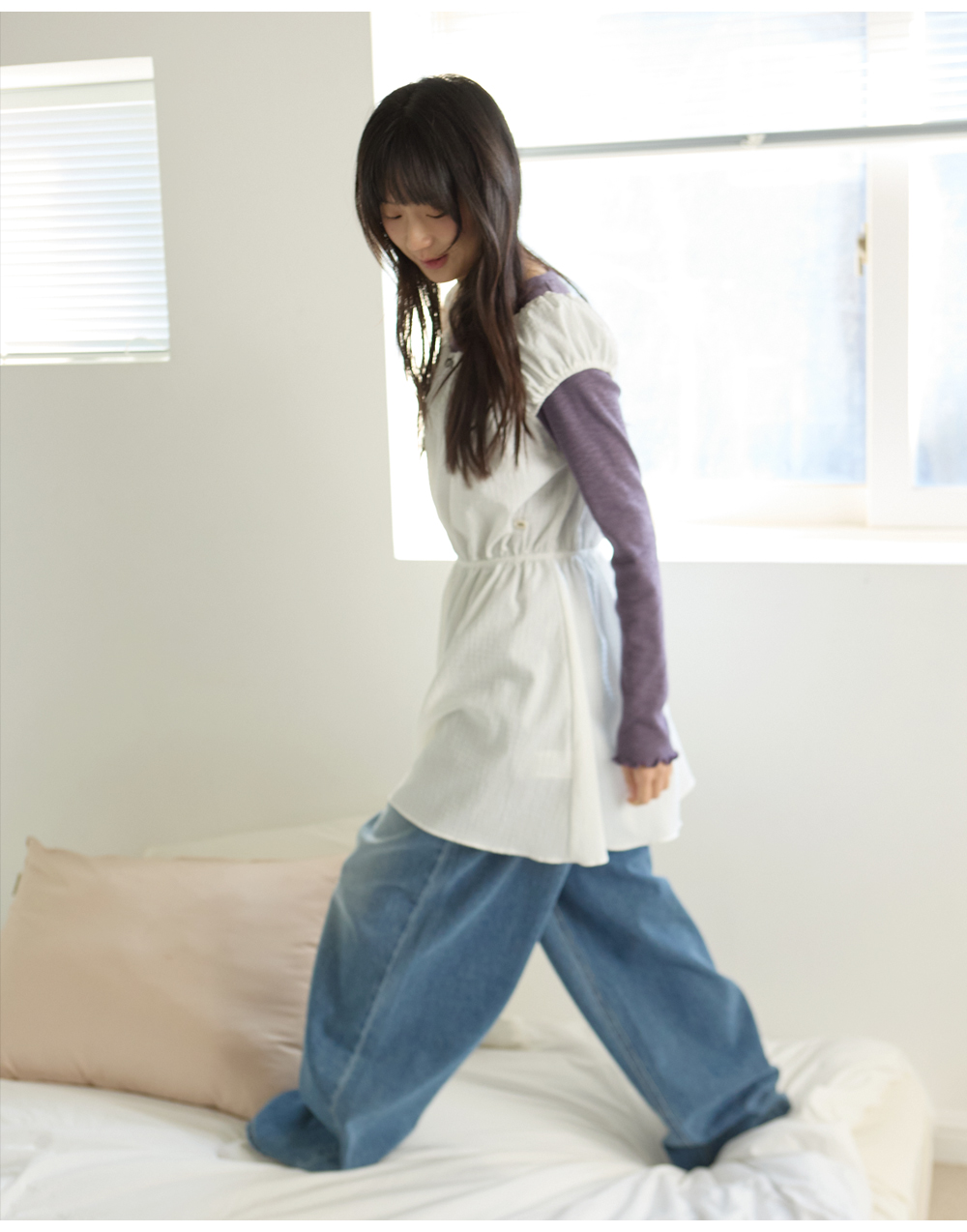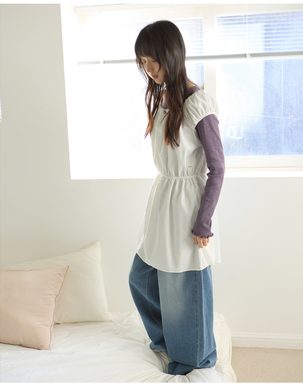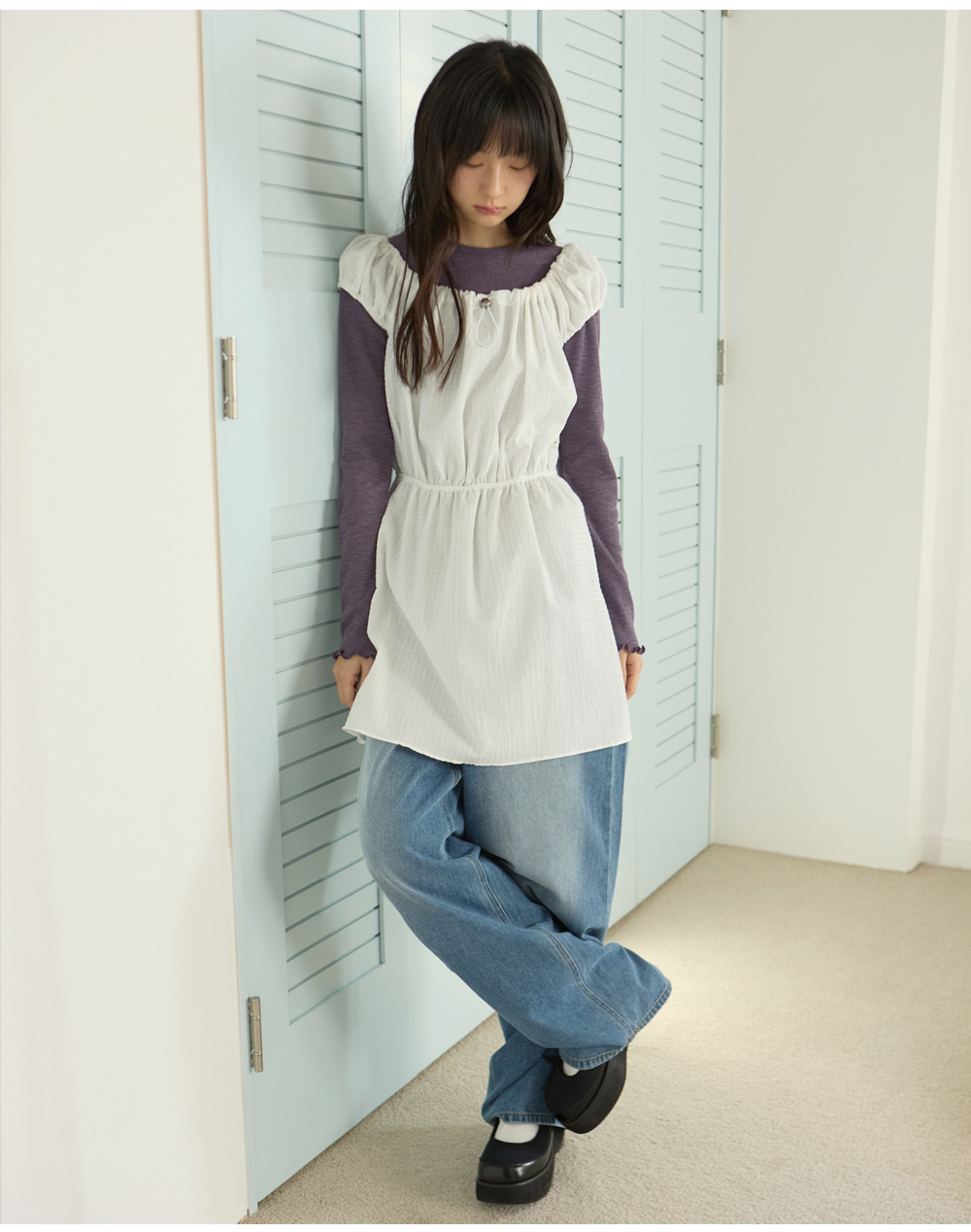 W SHIRRING MINI ONE-PIECE [IVORY]