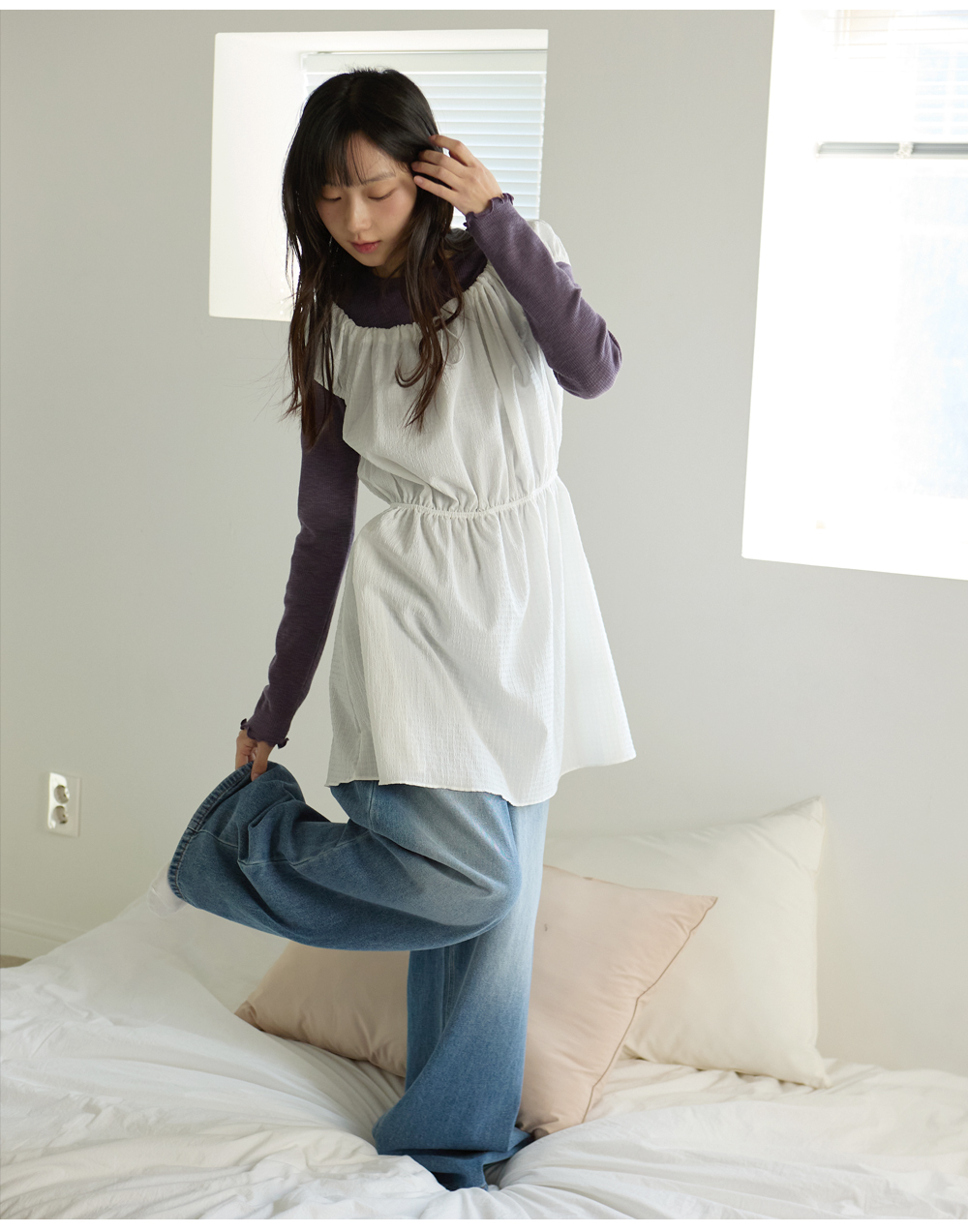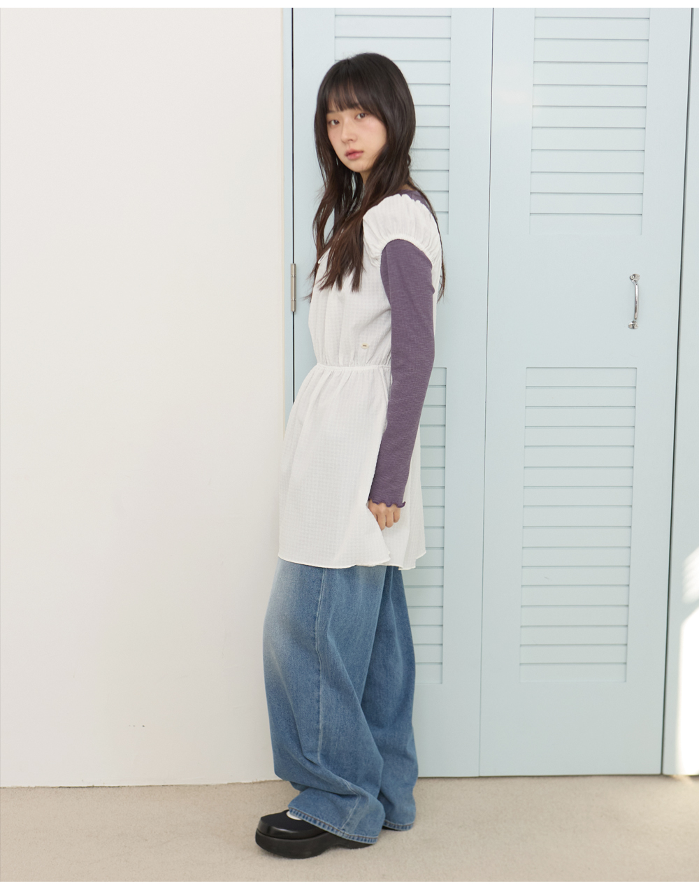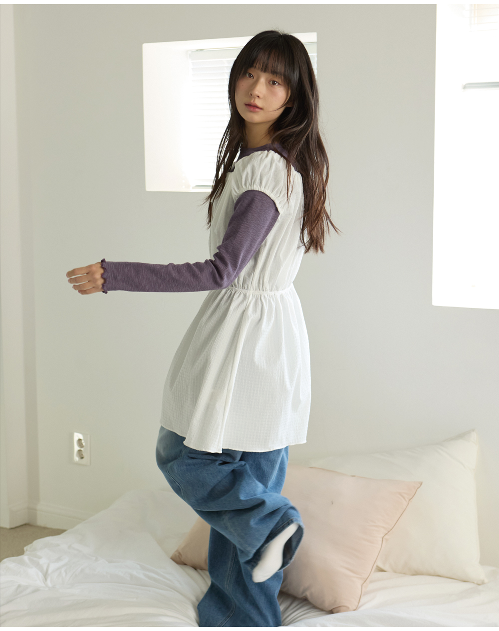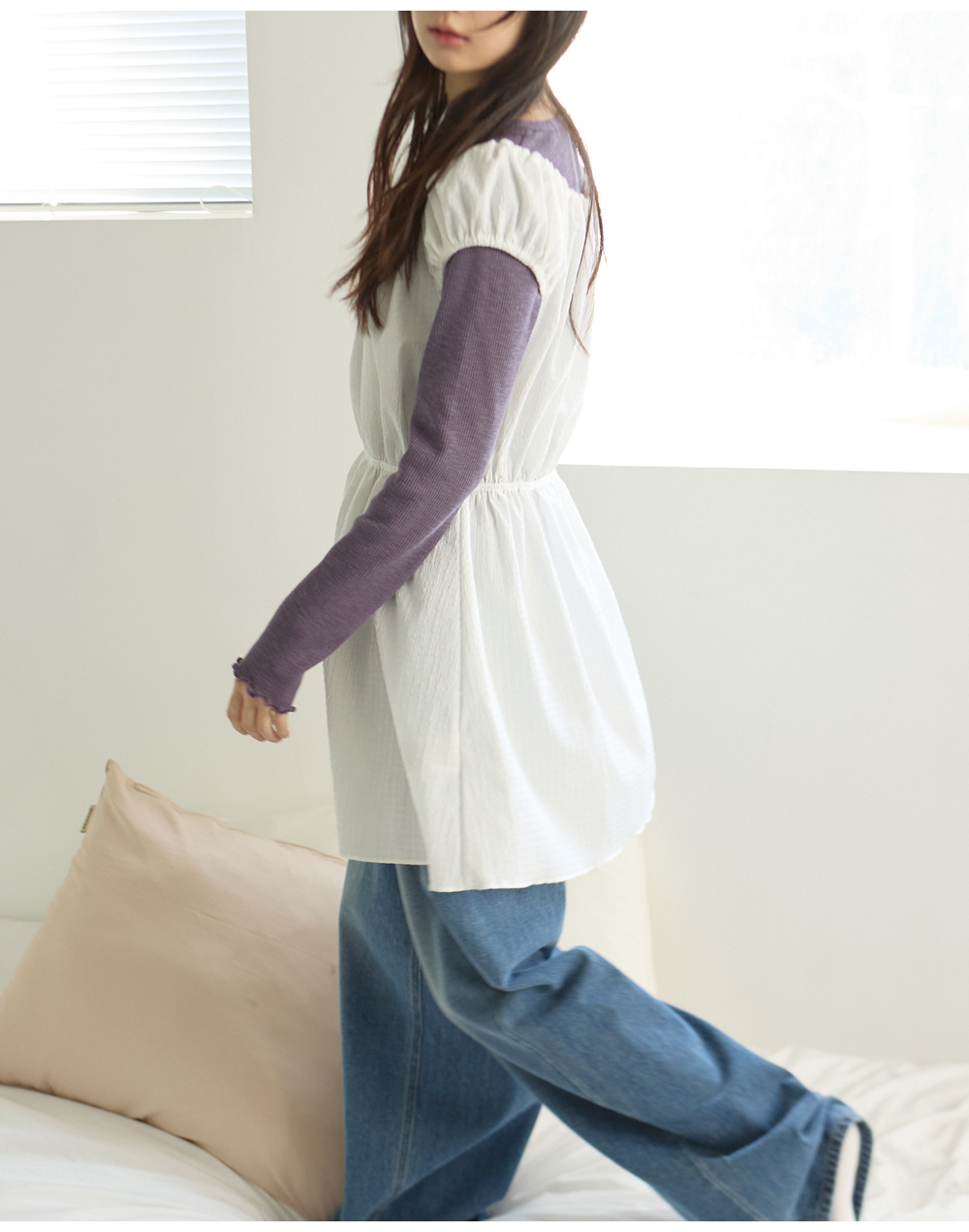 W SHIRRING MINI ONE-PIECE [IVORY]