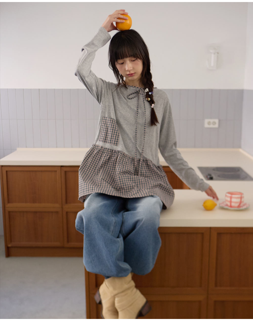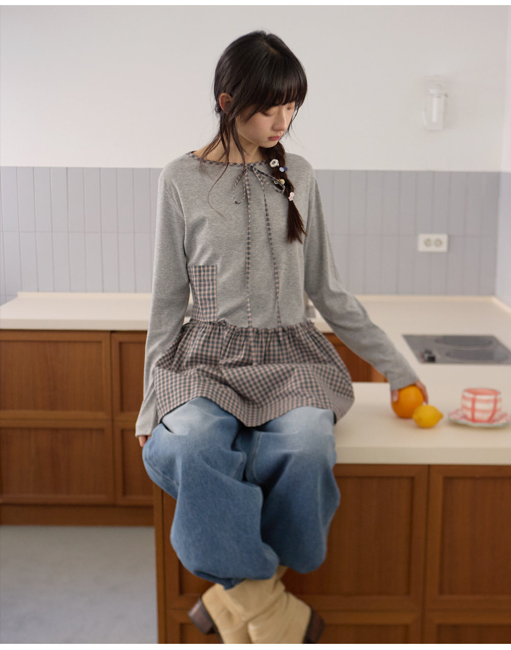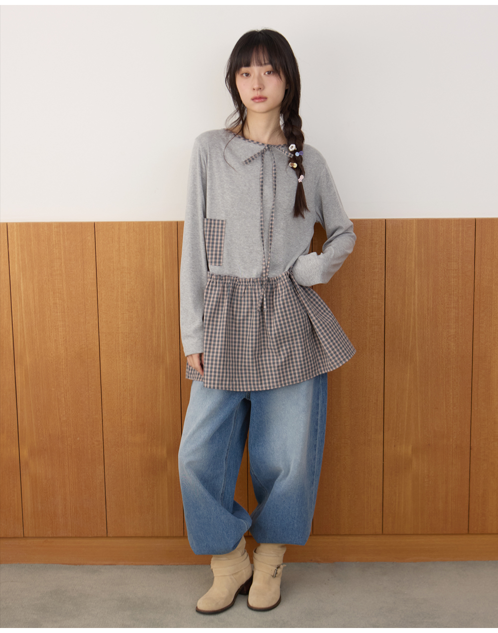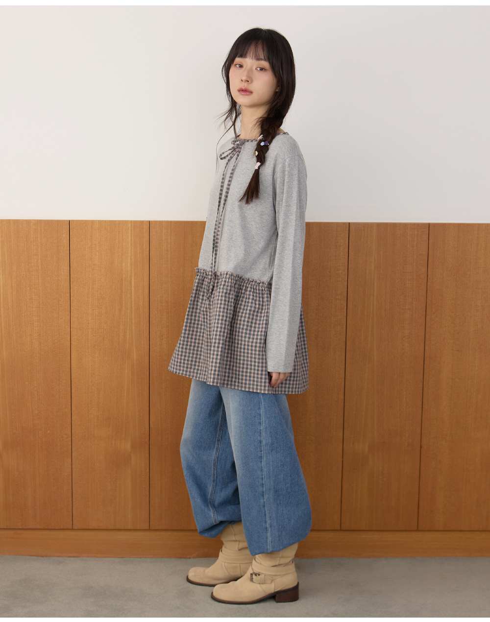 체크 레이어드 가디건 라이트멜란지