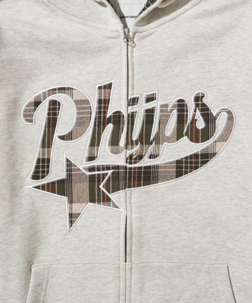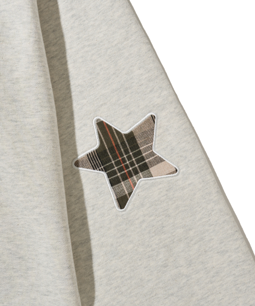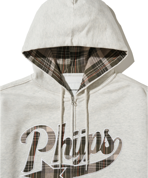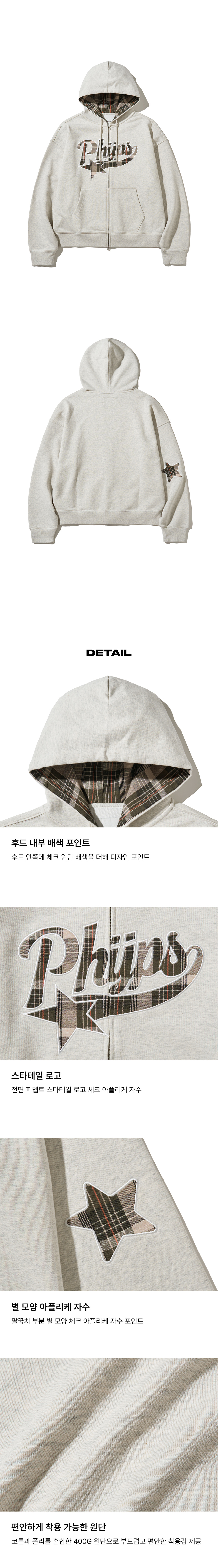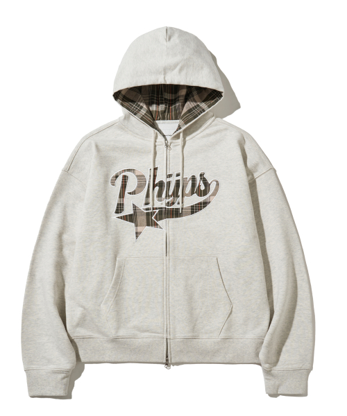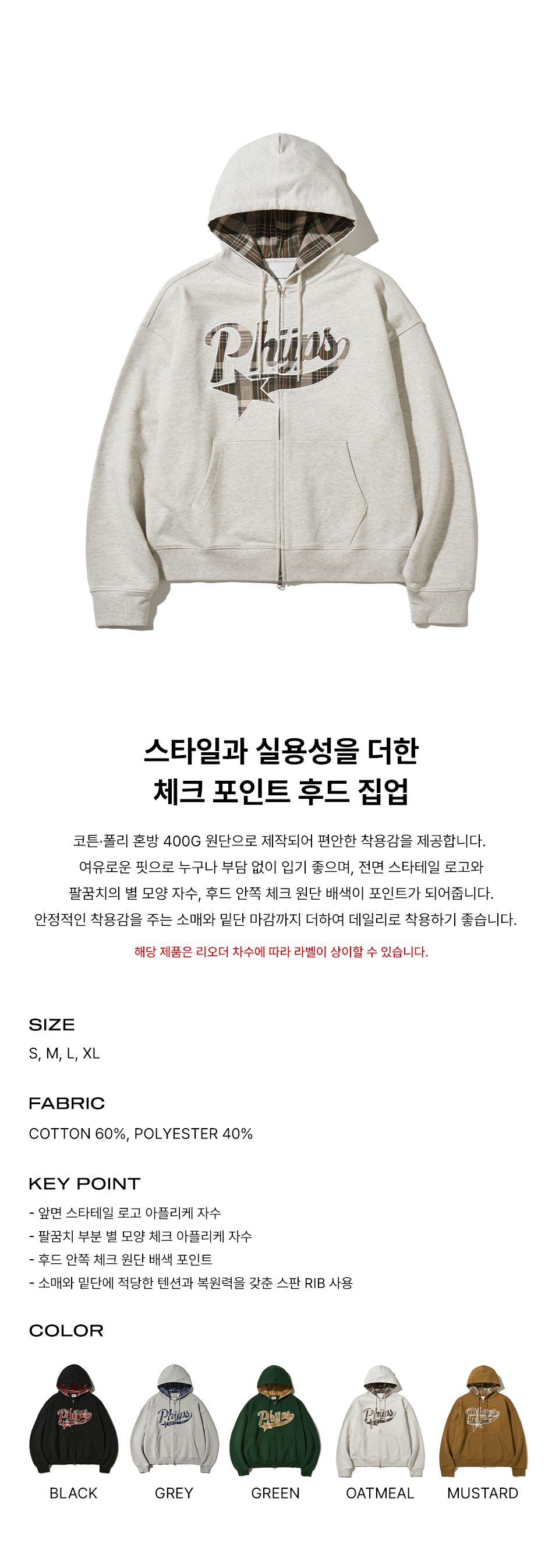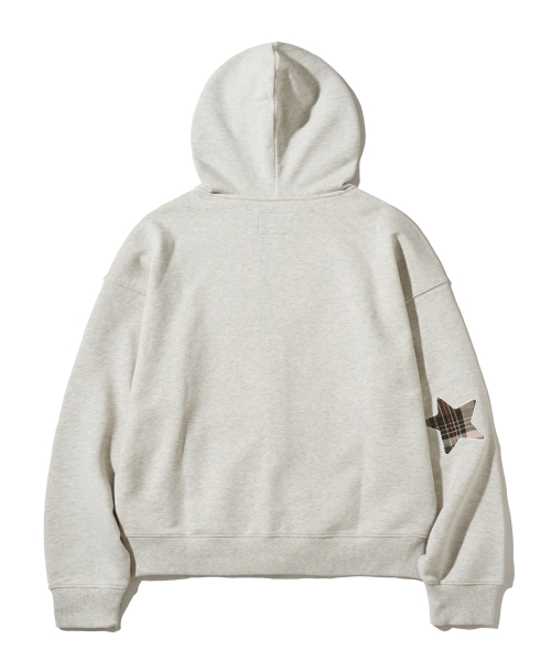 체크 스타테일 엘보우 패치 후드집업_오트밀