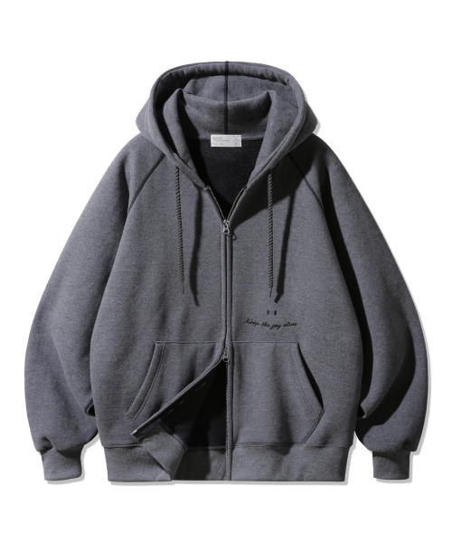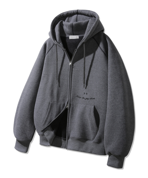 [기모] 스마일 피치 브러쉬 래글런 후드집업 BK7976_딥그레이
