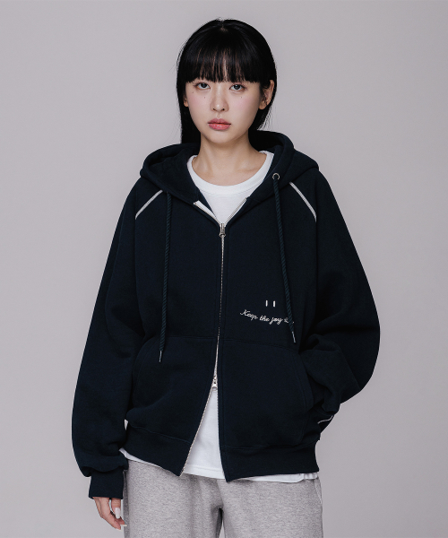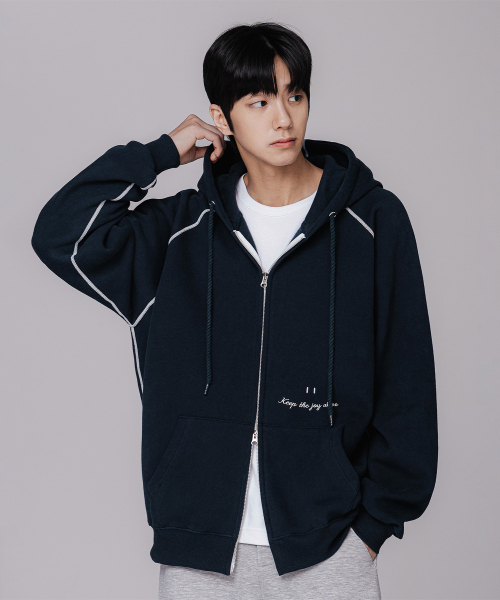 [기모] 스마일 피치 브러쉬 래글런 후드집업 BK7976_네이비