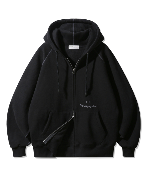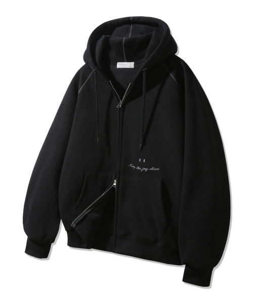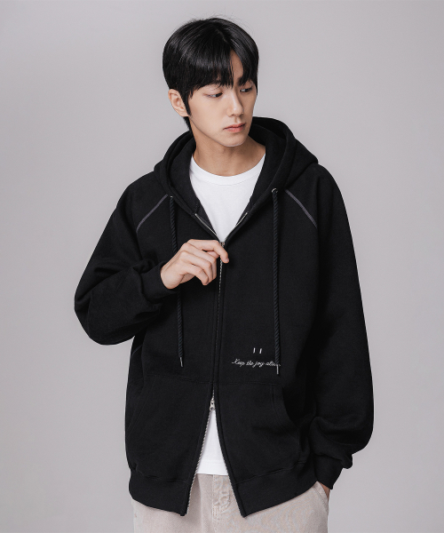 [기모] 스마일 피치 브러쉬 래글런 후드집업 BK7976_블랙