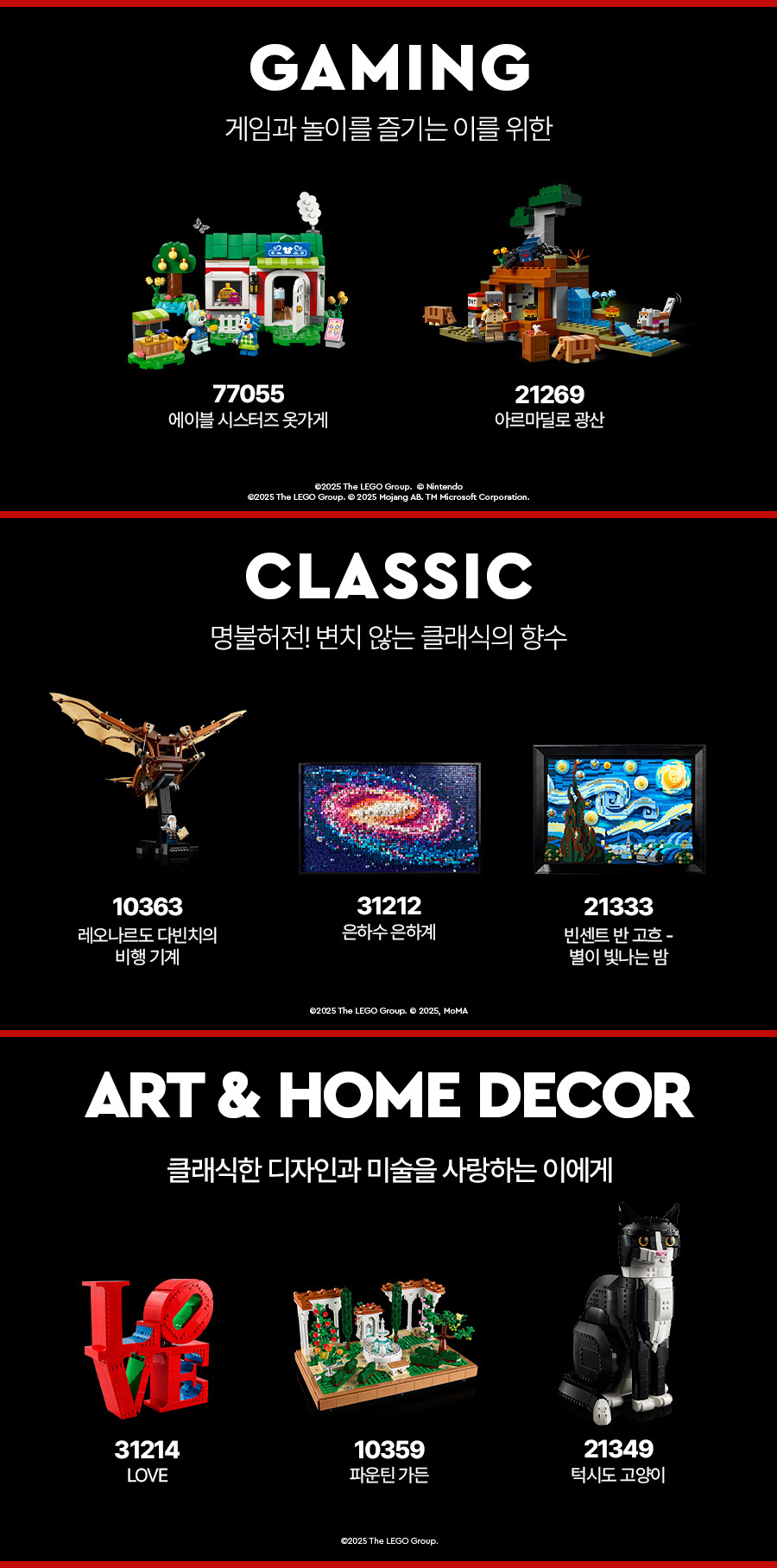 레고(LEGO)는 우리의 미래인 아이들이 놀이를 통해 창의적으로 성장할 수 있도록 끊임없이 연구하는 덴마크의 완구 기업 브랜드입니다.