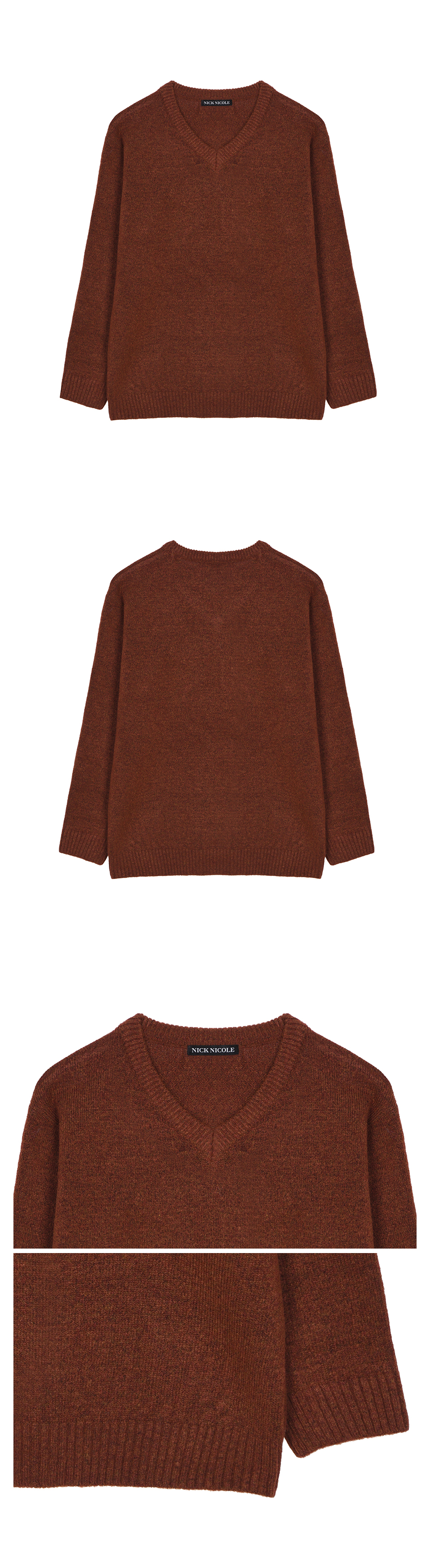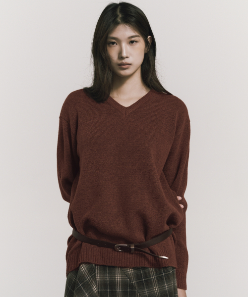 [ESSENTIAL] CLASSICAL SOFT V SWEATER_BRICK RED