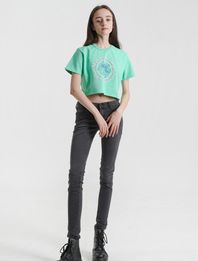 우먼즈 르리스 트로피컬 엠보자수 크롭티 그린화이트(FCC2TS428W)
