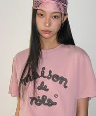 MAISON DE ROLA EMBROIDERY PIGMENT LOOSE FIT T-SHIRT I/PINK