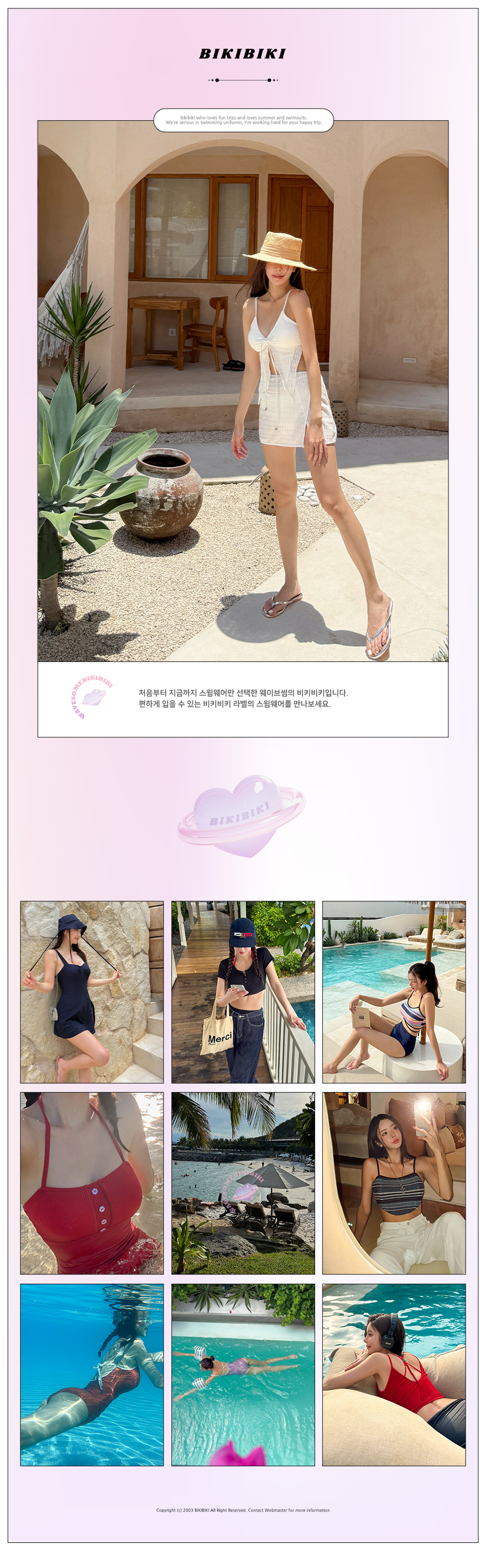 비키비키(BIKIBIKI)는 입었을 때의 감각과 핏을 최우선으로 고려해 자체 제작 비키니를 선보입니다. 고도화된 원단 선정과 섬세한 설계를 바탕으로 트렌드를 선도하며, 편안함과 감도 높은 스타일을 동시에 제안하는 브랜드입니다.