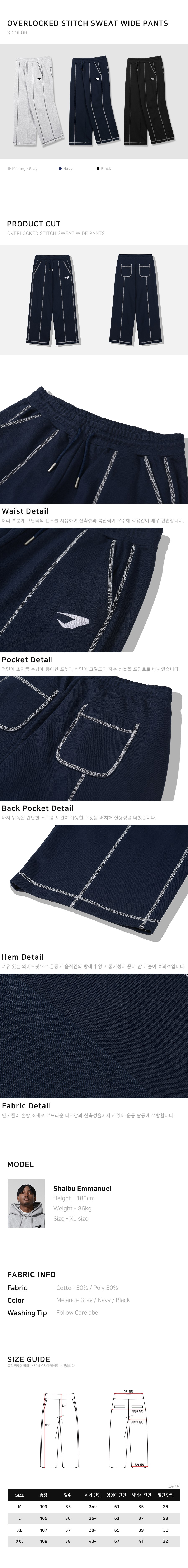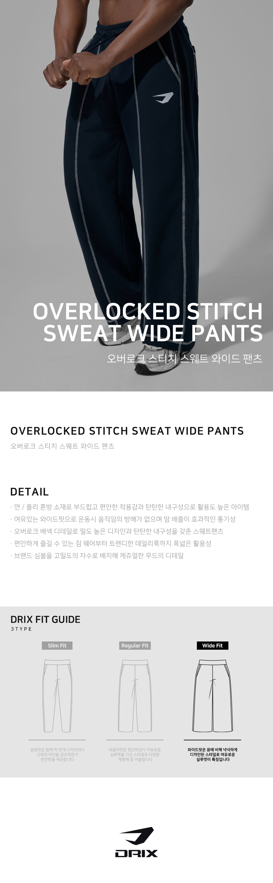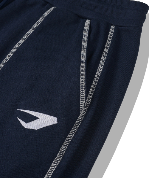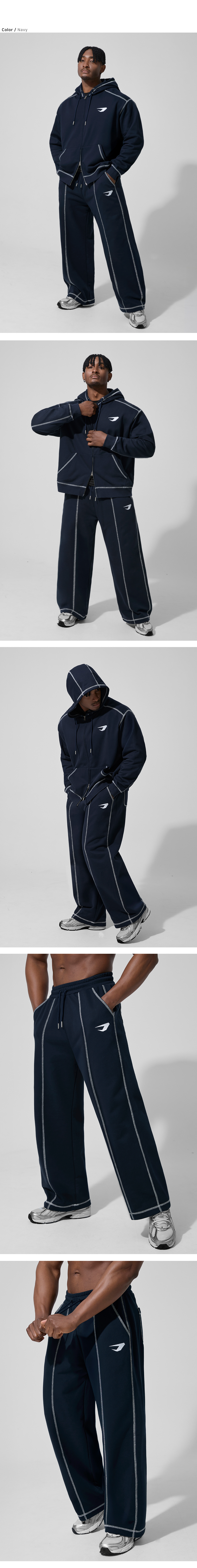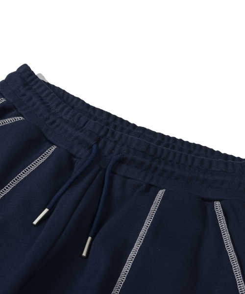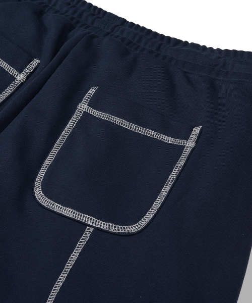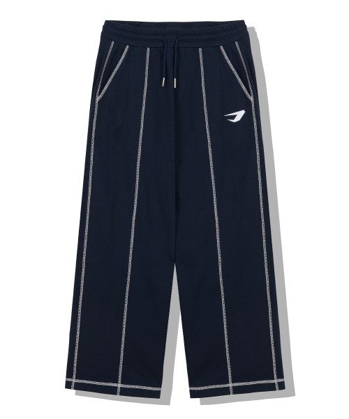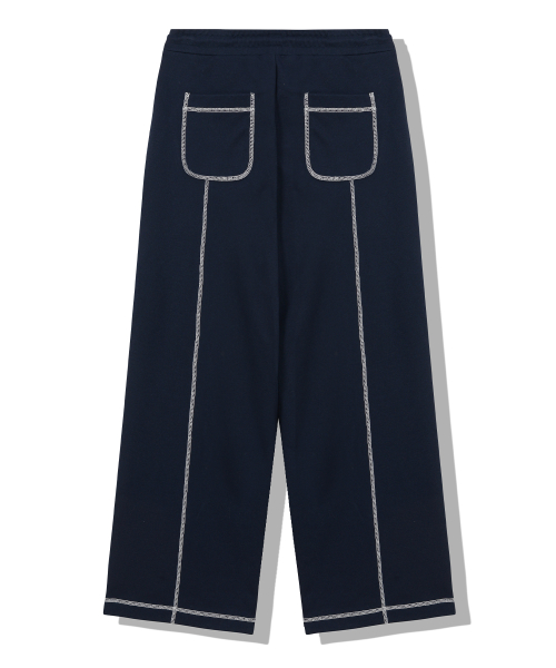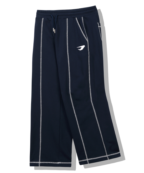 오버로크 스티치 스웨트 와이드 팬츠_네이비