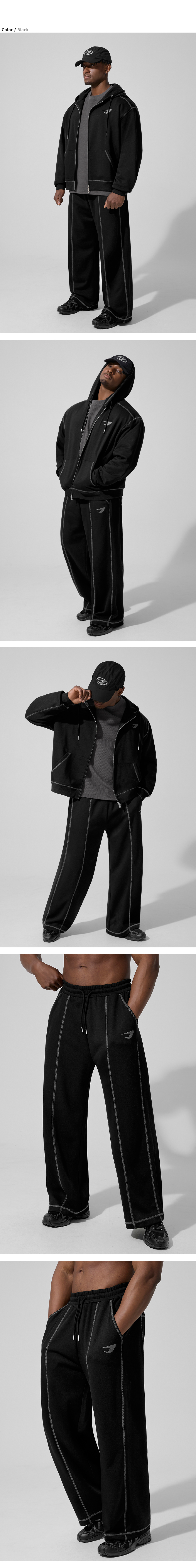 오버로크 스티치 스웨트 와이드 팬츠_블랙