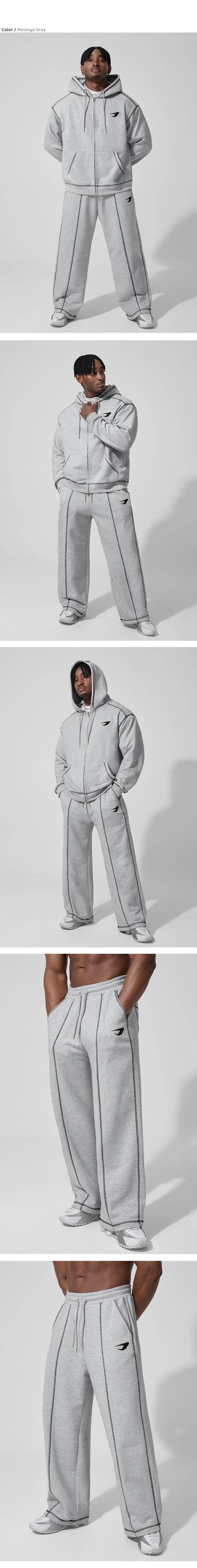 오버로크 스티치 스웨트 와이드 팬츠_멜란지 그레이