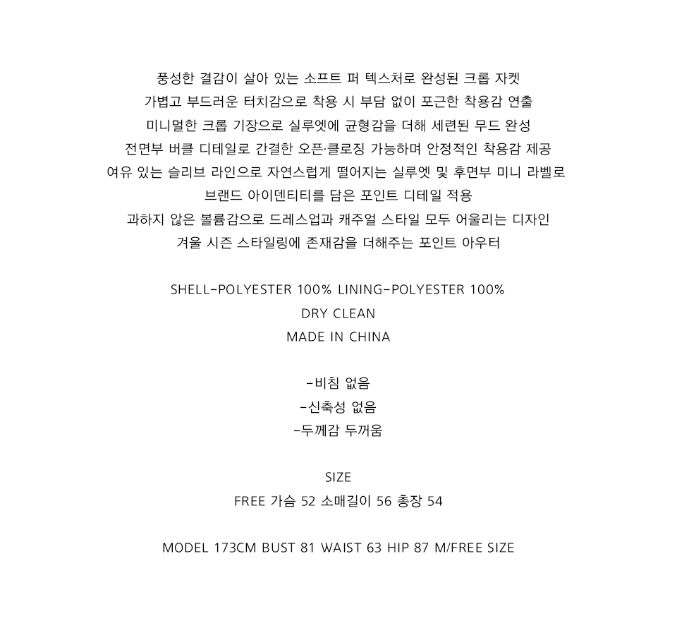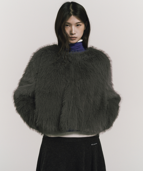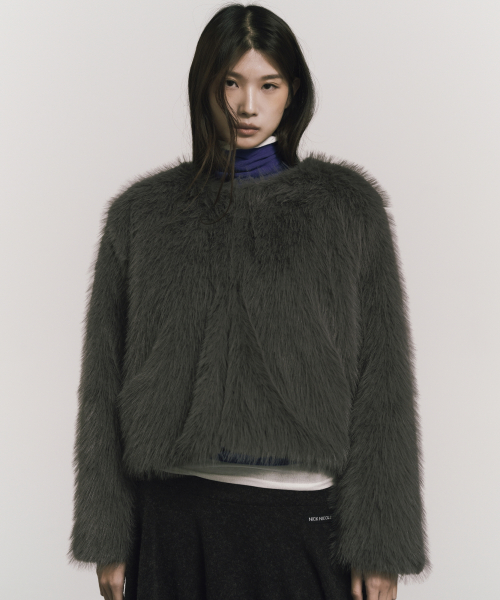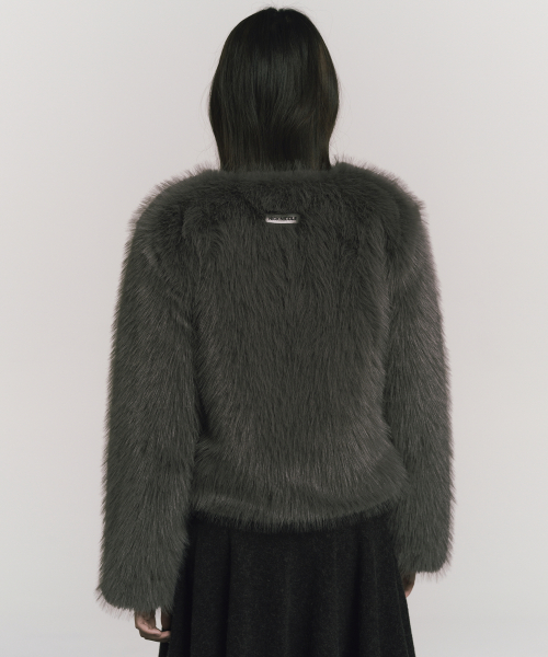 SOFT FUR CROPPED JACKET_CHARCOAL