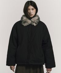 FUR HOOD SHORT JUMPER_BLACK