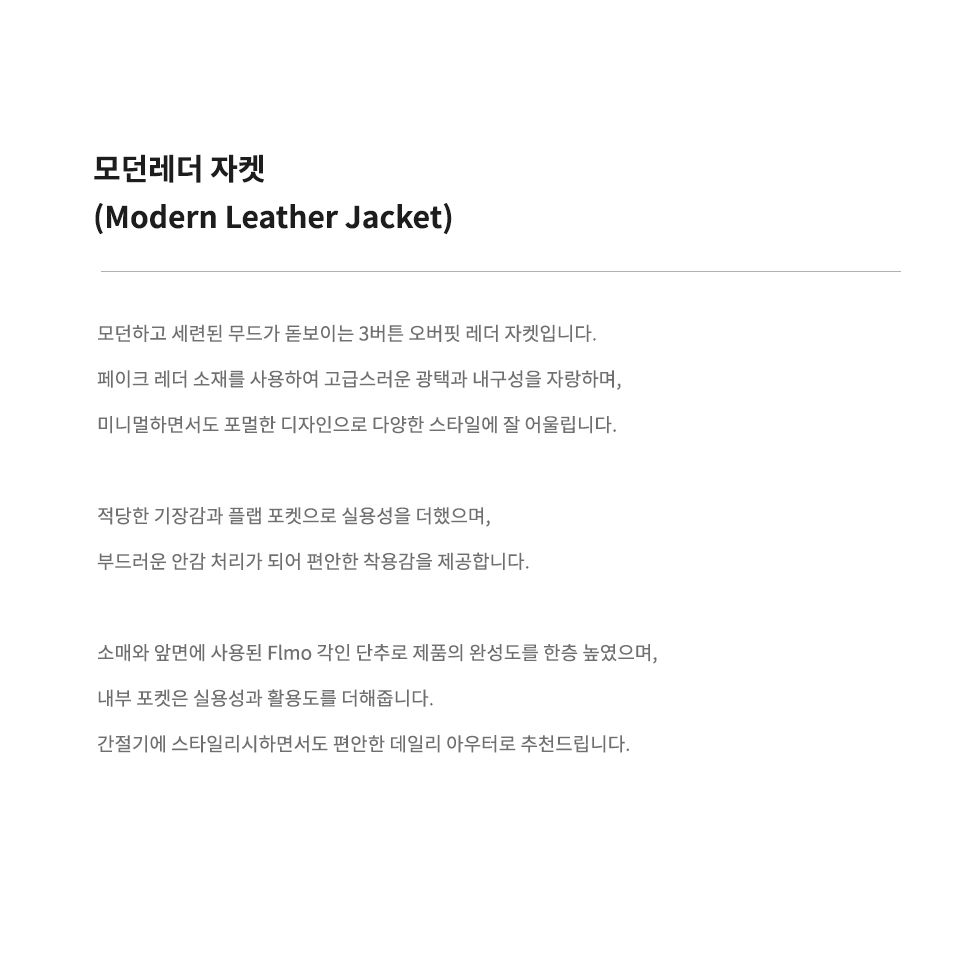 플모(FLMO)는 불필요함을 덜어낸 본질적 아름다움을 추구하며 정확한 비율과 절제된 미니멀 디자인으로 일상에 스며드는 클래식 감성을 제안하는 브랜드입니다.