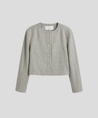 핀스트라이프 크롭 라운드 재킷 [베이지/브라운]