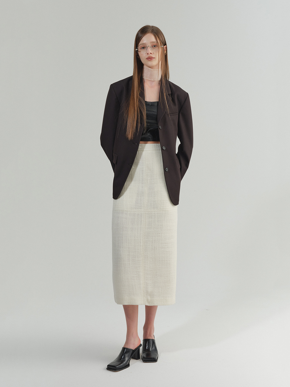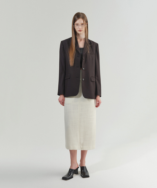 미니멀 칼라리스 재킷 노카라 [아이보리]