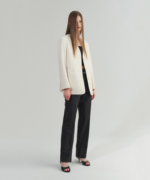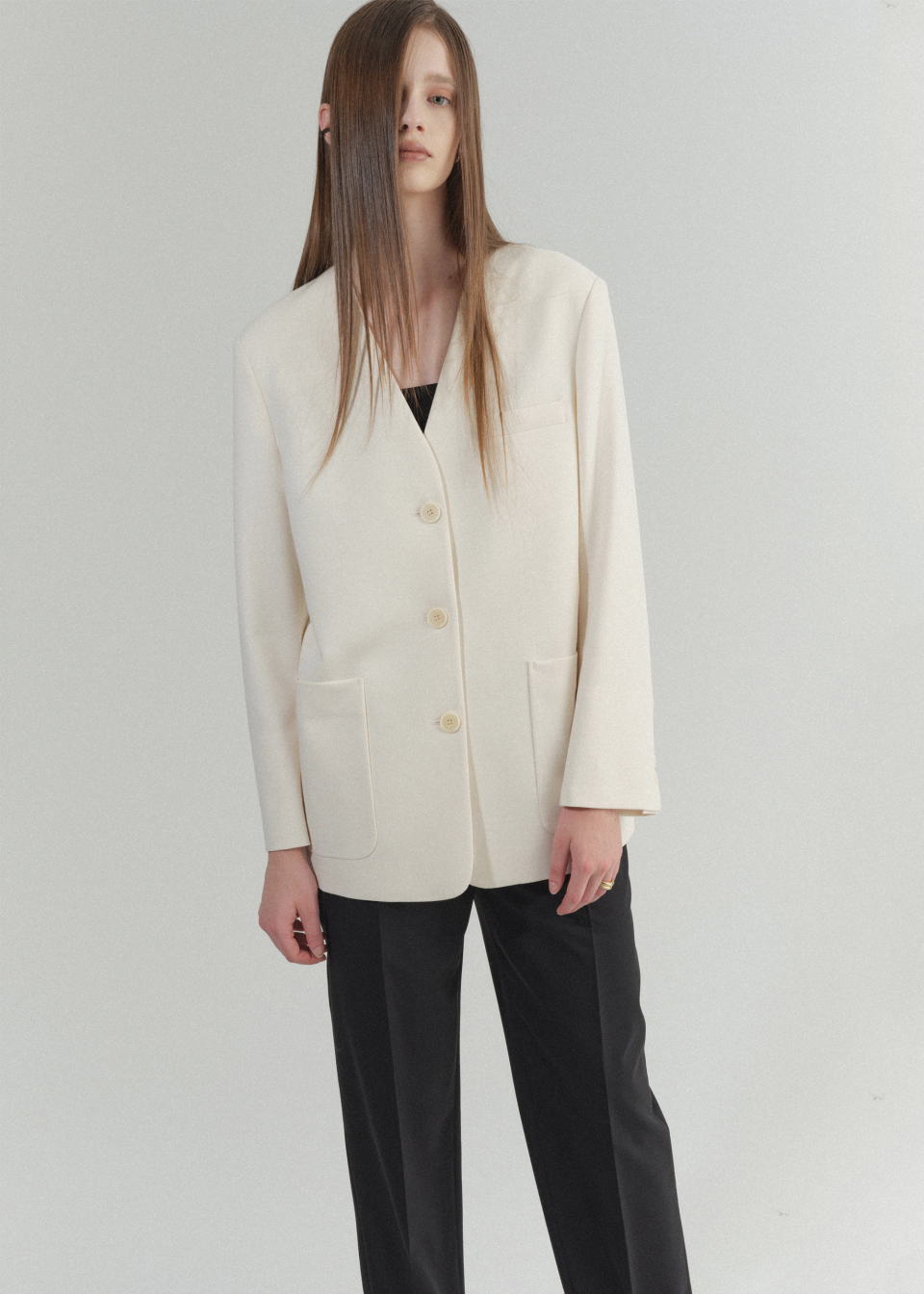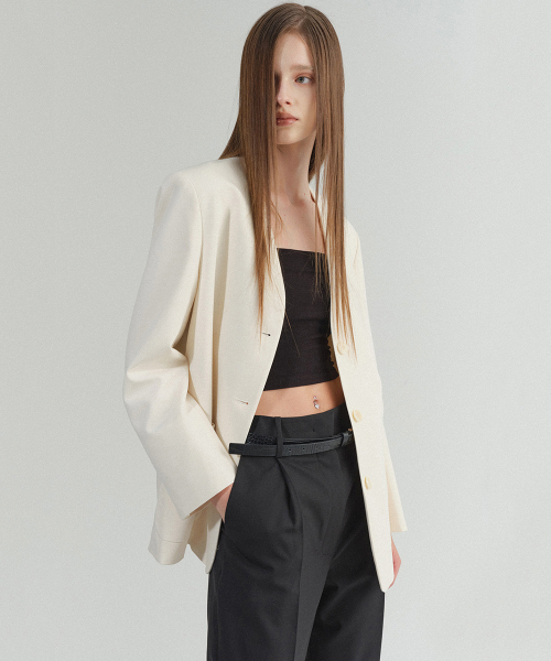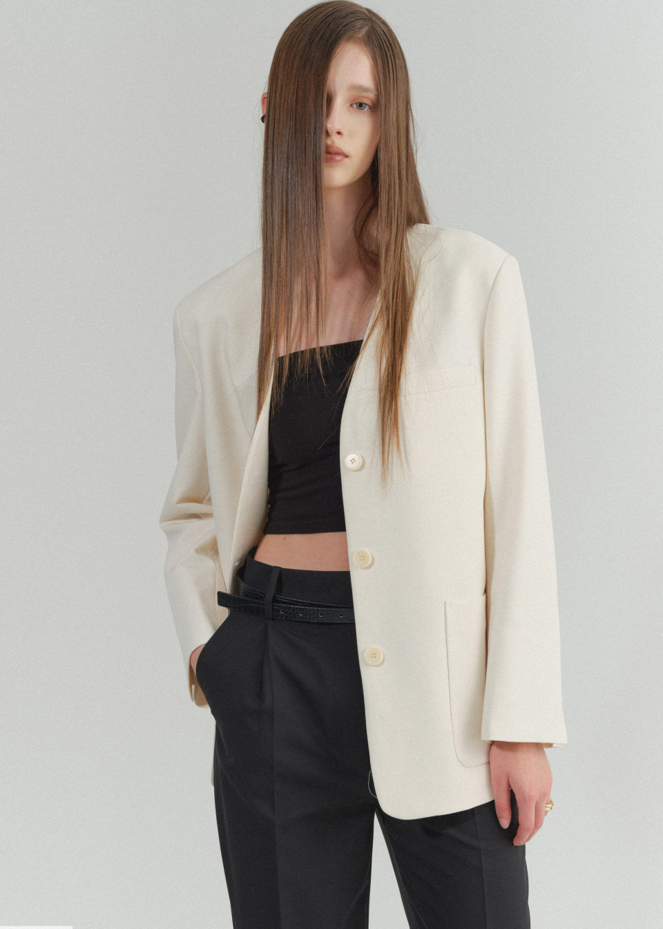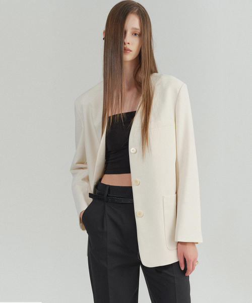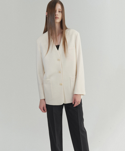 미니멀 칼라리스 재킷 노카라 [아이보리]
