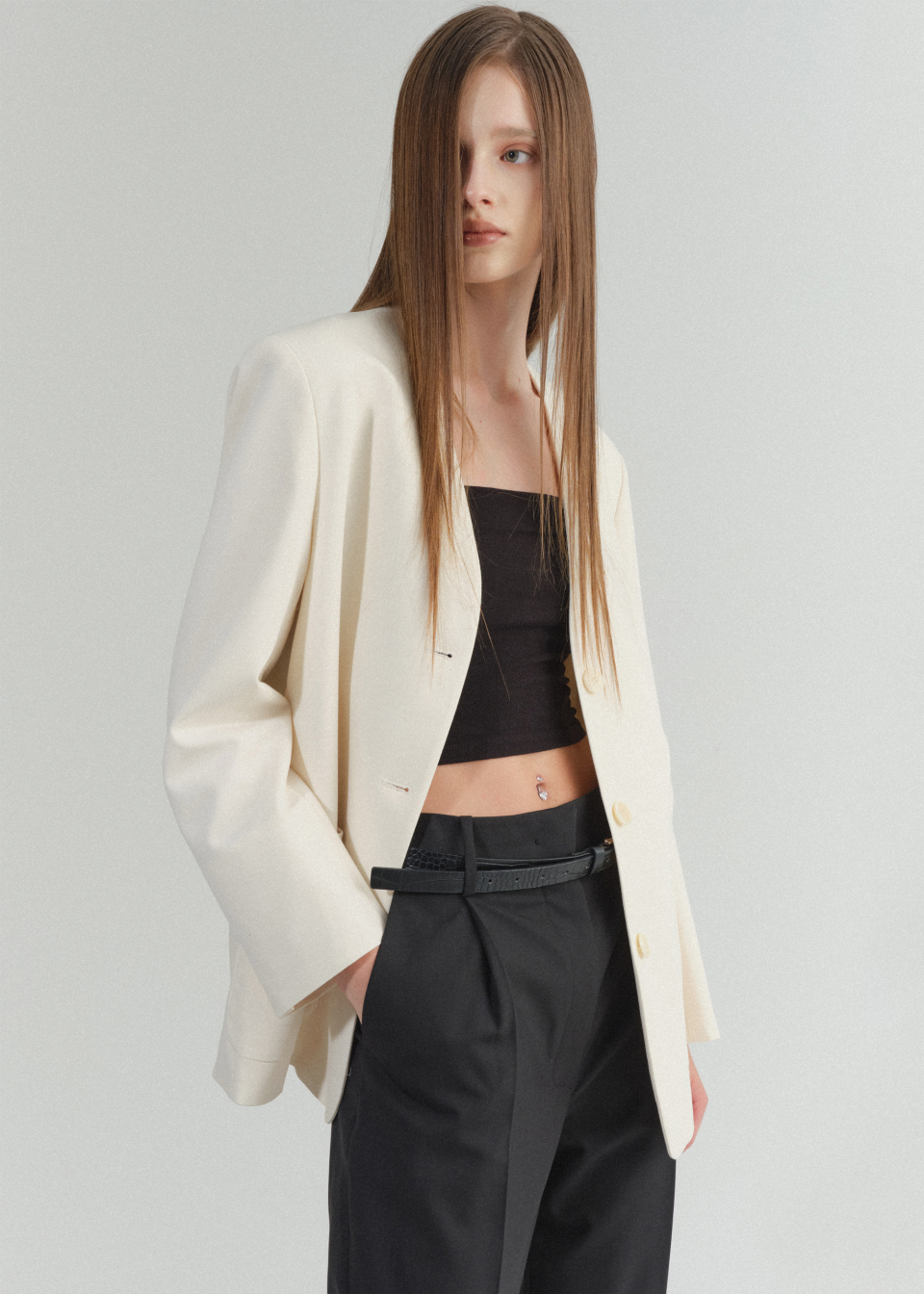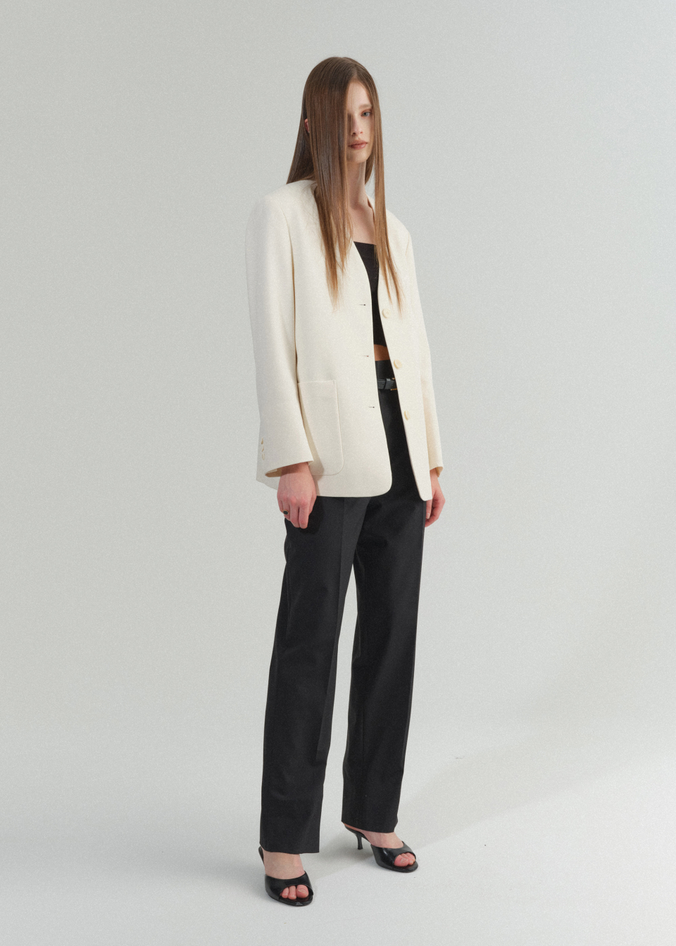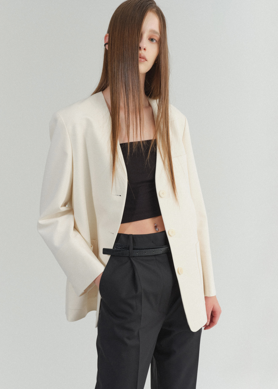 미니멀 칼라리스 재킷 노카라 [아이보리]