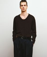 실크 울 블렌드 딥 브이넥 니트 (브라운)