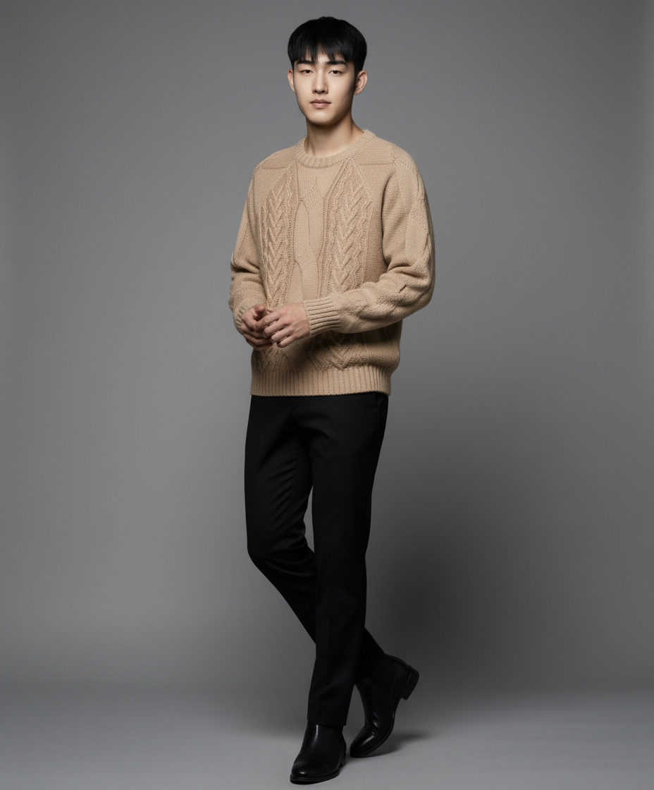 헤비 멀티 케이블 오버핏 스웨터 (베이지) 48