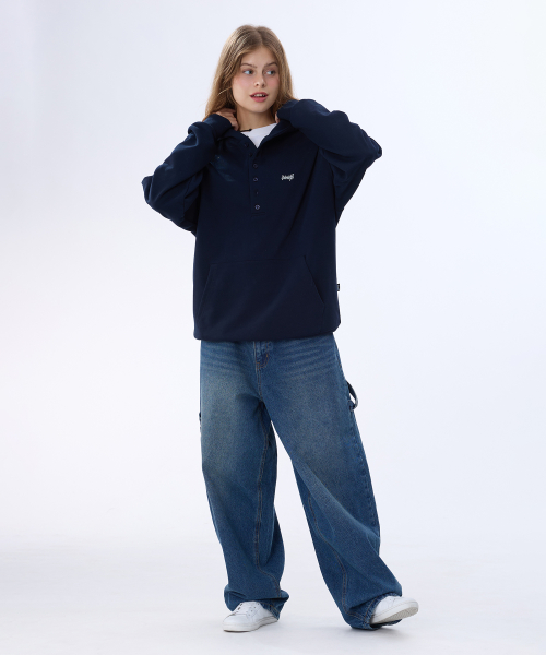 체크 패턴 후드 집업 윈드브레이커_네이비 블랙