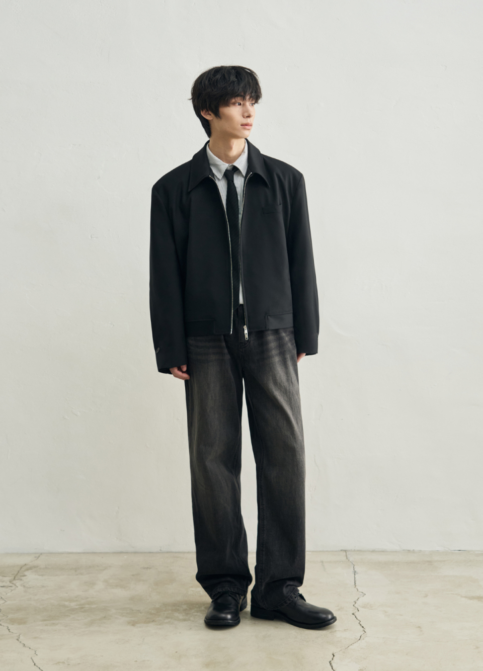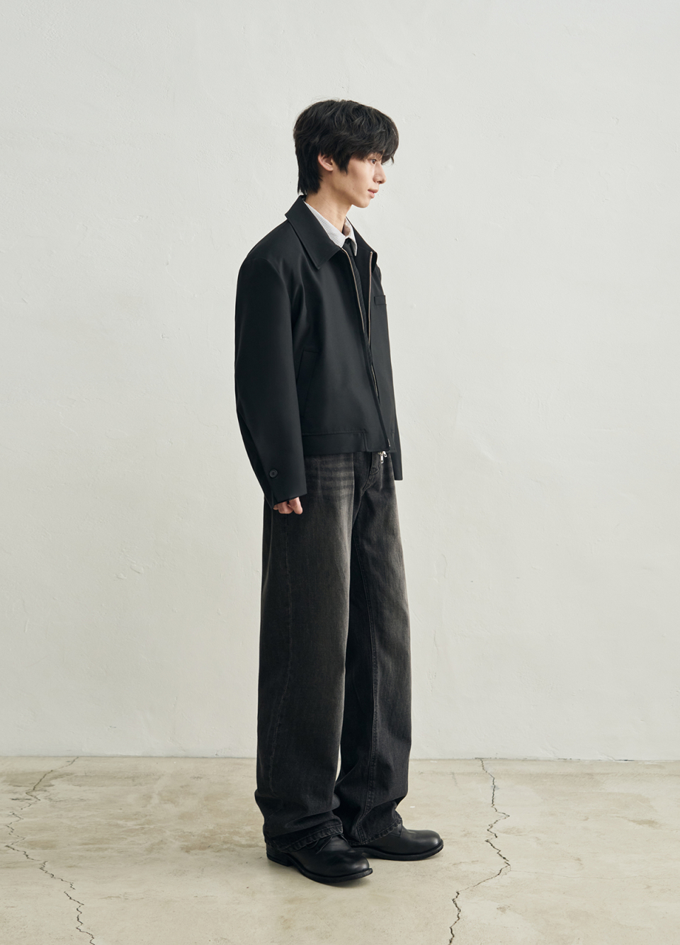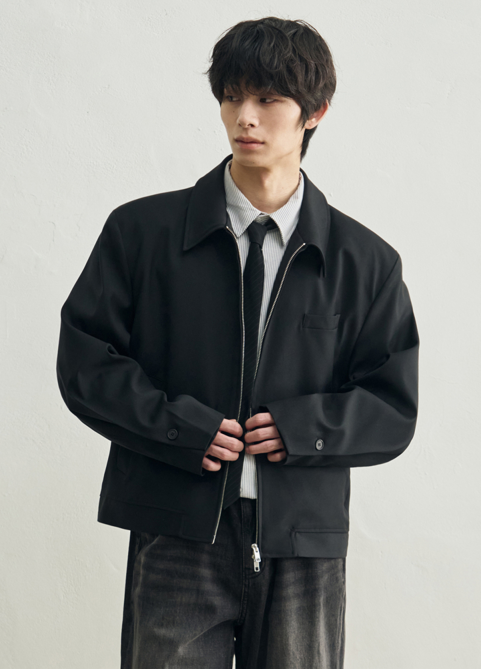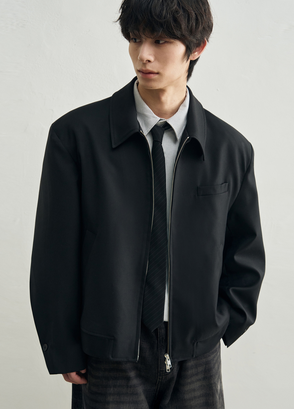 [서강준 PICK] 도브 울 크롭 미니멀 블루종 자켓 [BLACK]