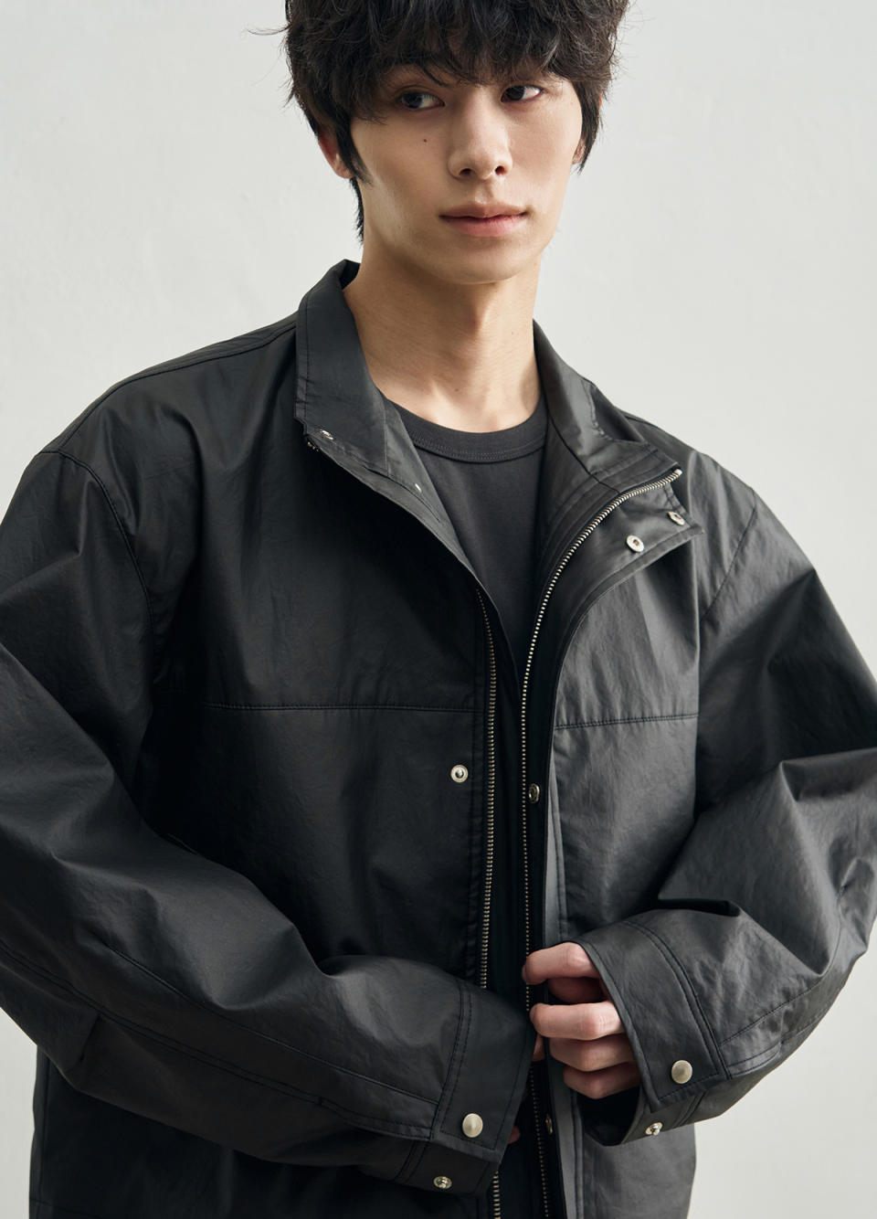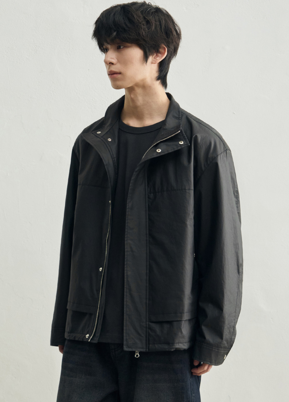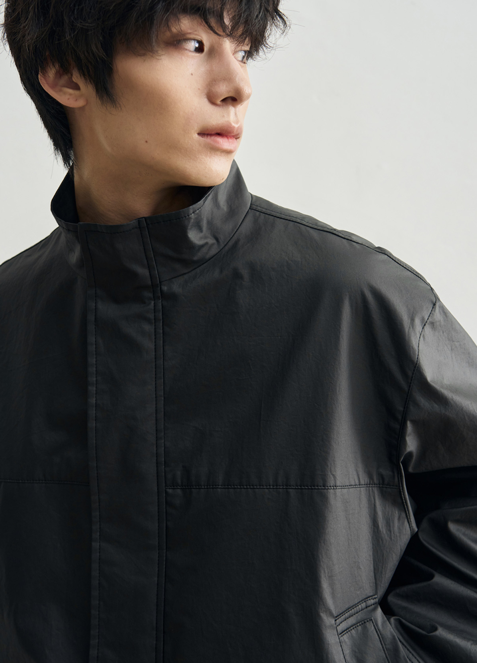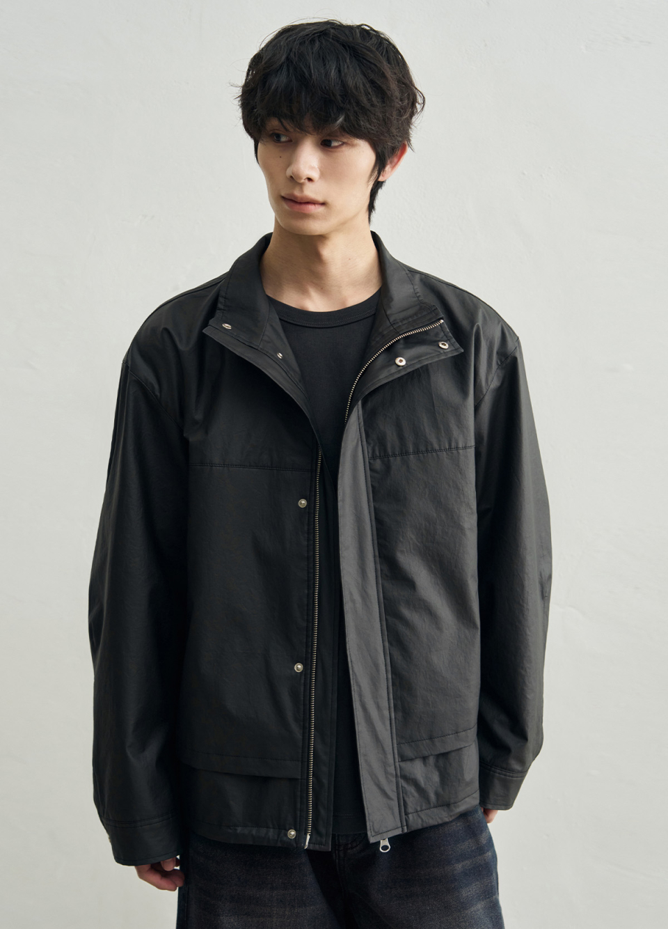 코팅 코튼 하이넥 블루종 자켓 [블랙]