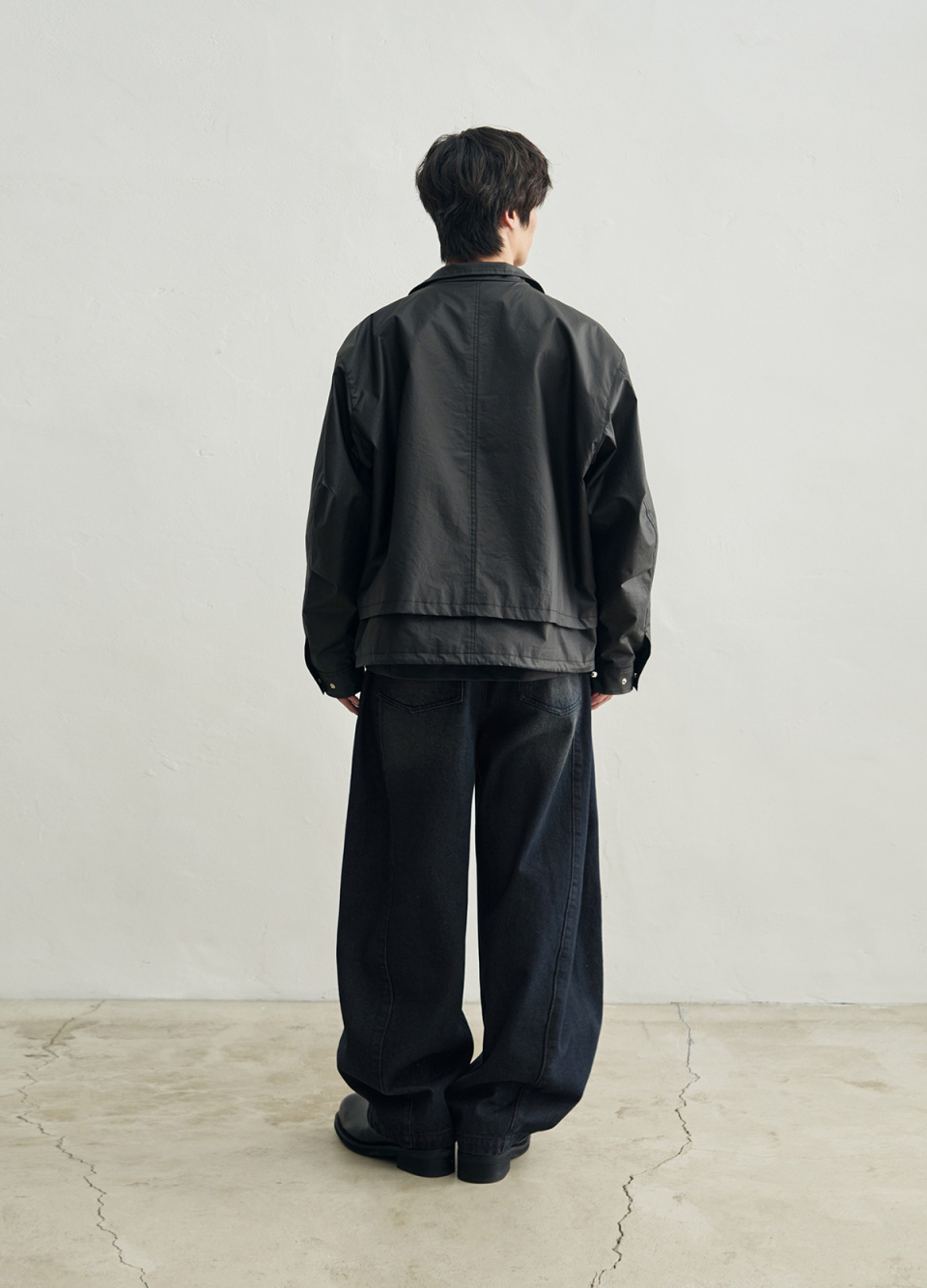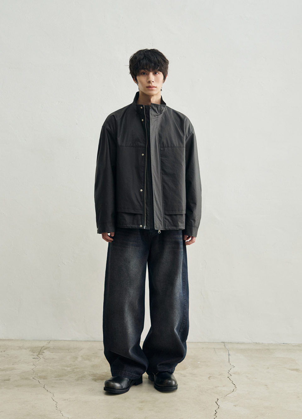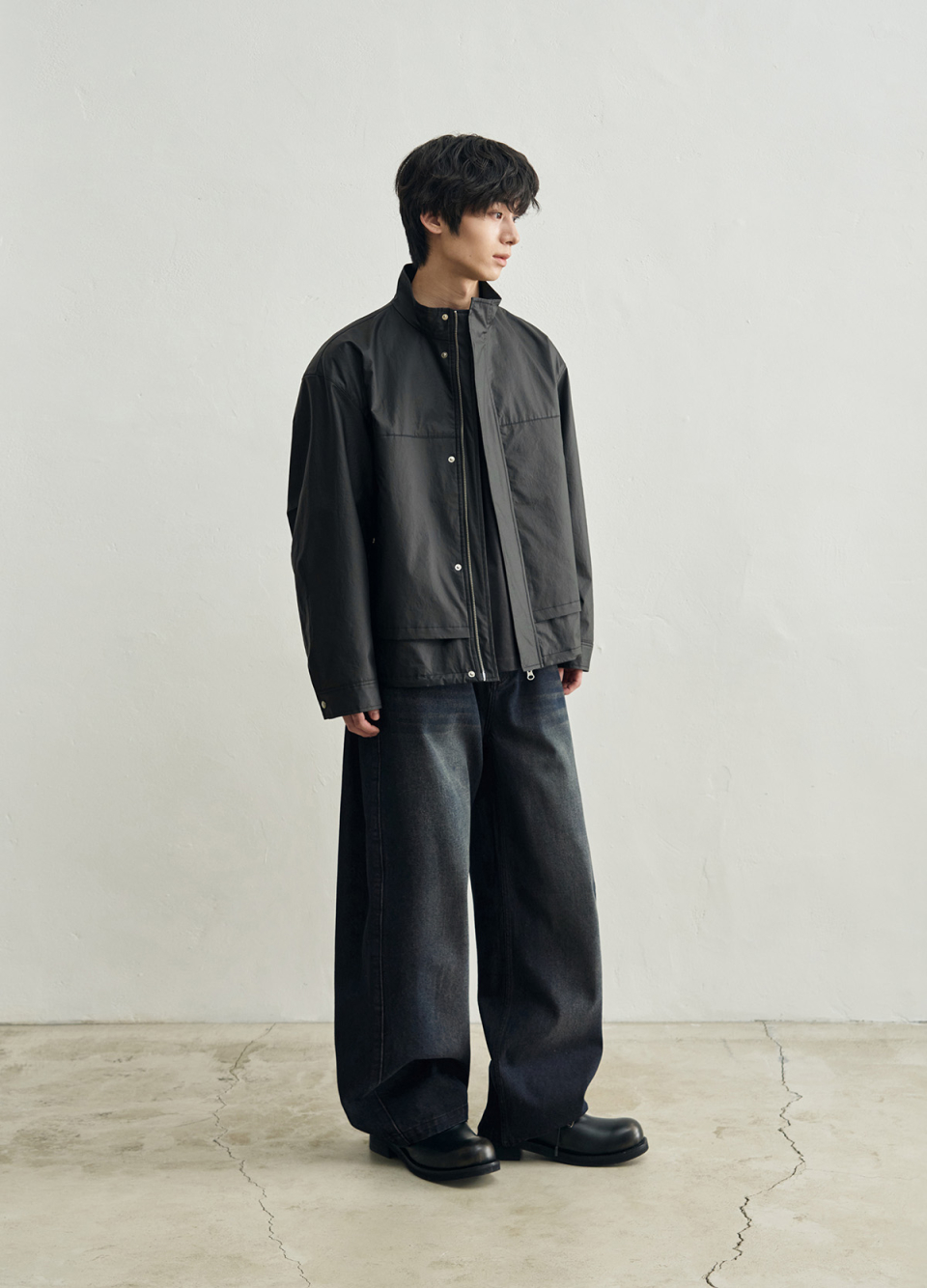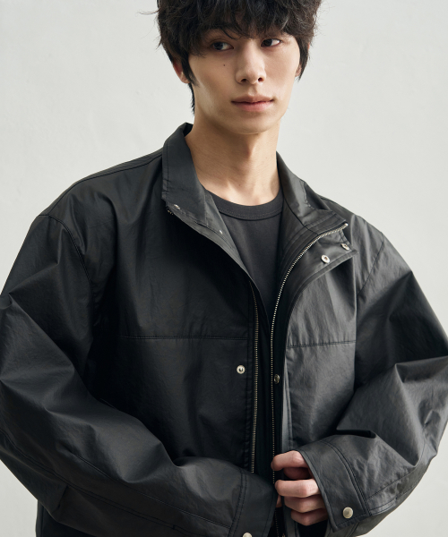 코팅 코튼 하이넥 블루종 자켓 [블랙]