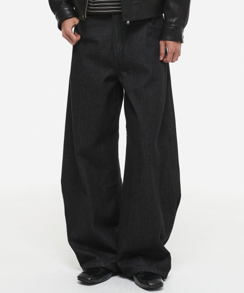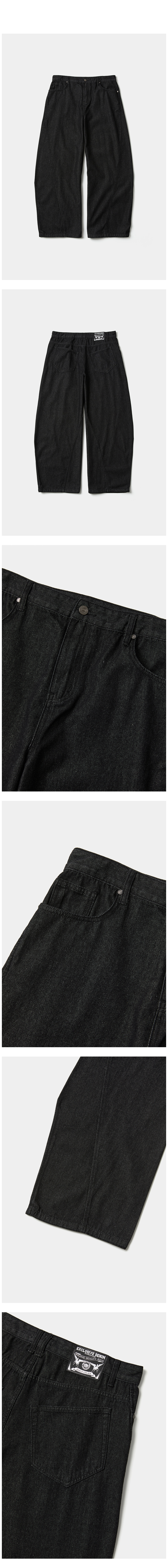 커브드 헤링본 스트라이프 데님 팬츠 블랙