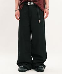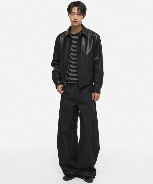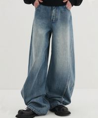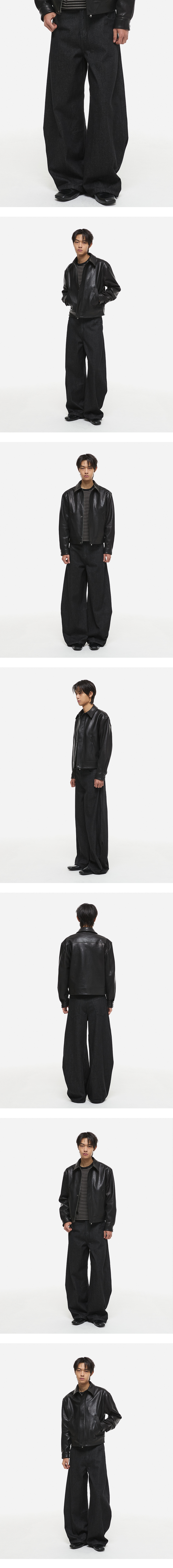 원웨이 워싱 와이드 데님 팬츠(블랙)