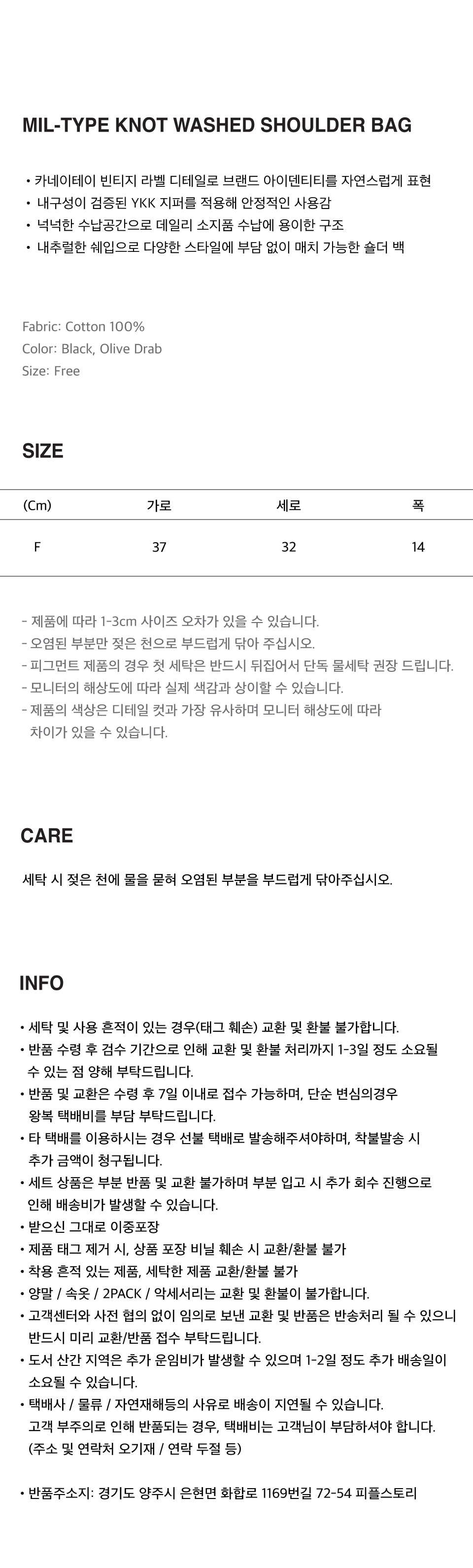 MIL-TYPE KNOT WASHED SHOULDER BAG (BLACK)