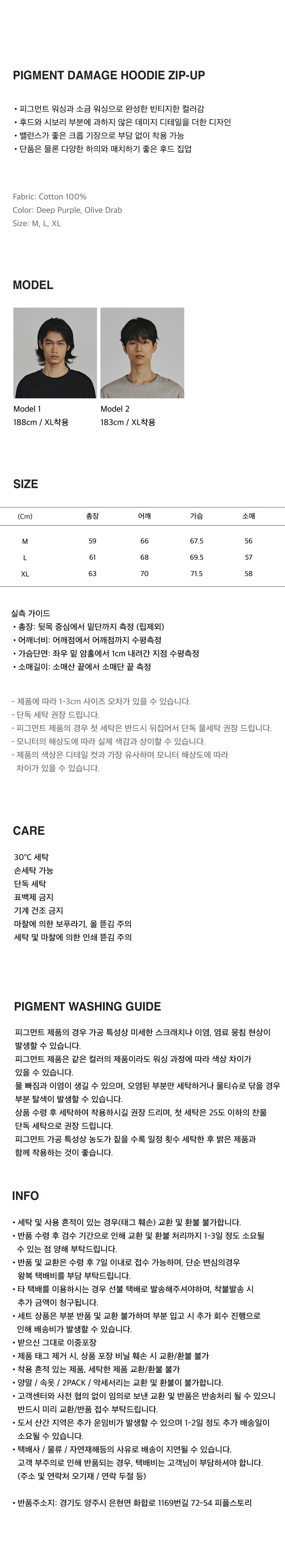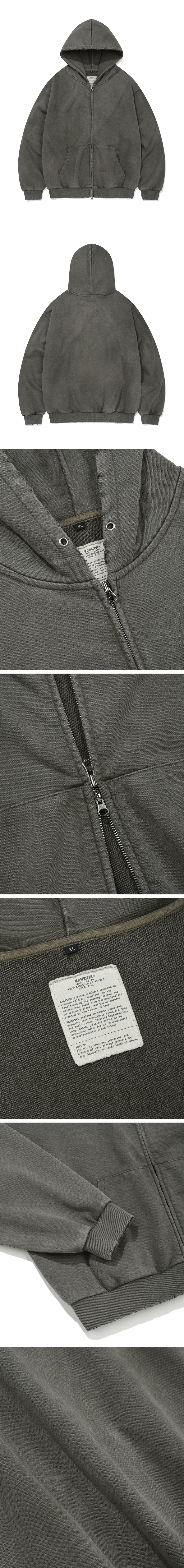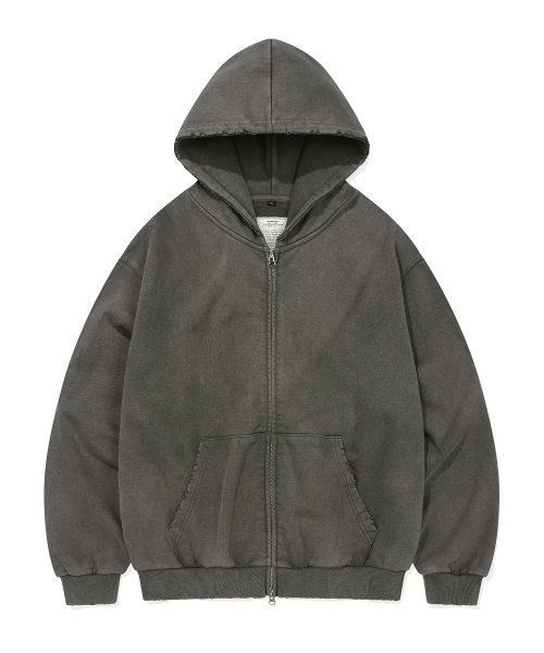 PIGMENT DAMAGE HOODIE ZIP-UP (OLIVE DRAB)