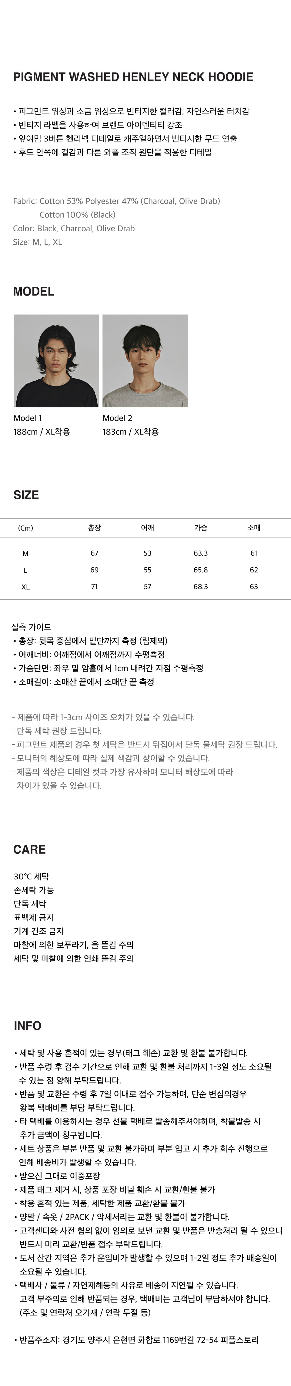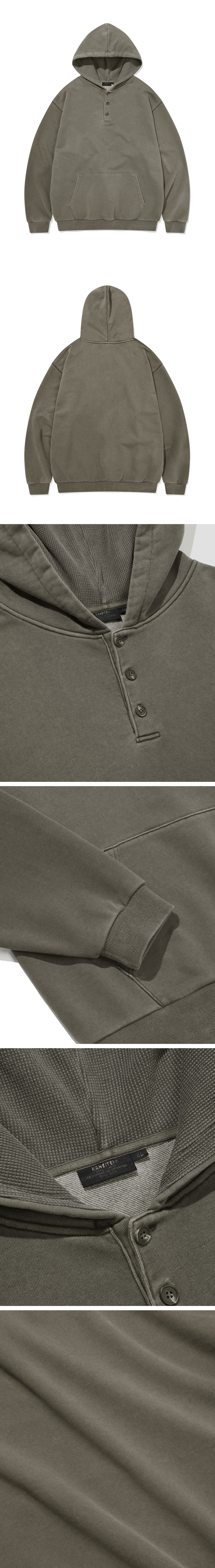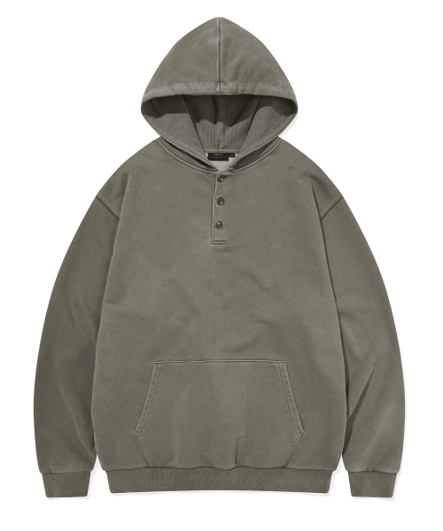 PIGMENT WASHED HENLEY NECK HOODIE (OLIVE DRAB)