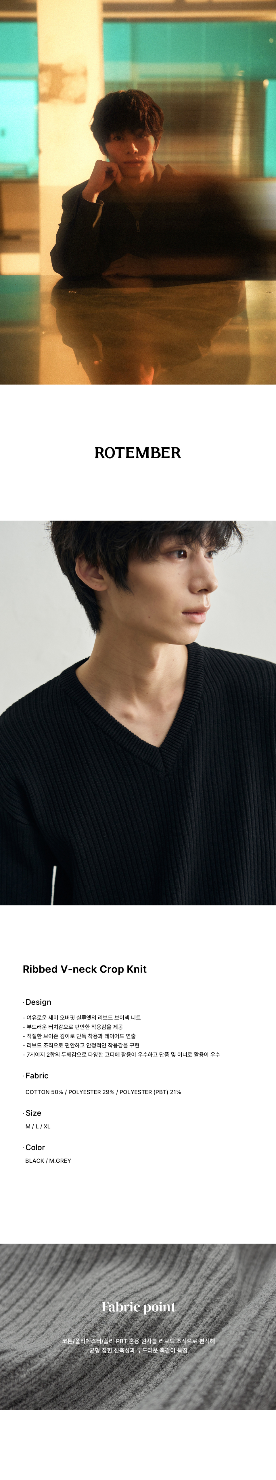 리브드 브이넥 크롭 니트 [블랙]