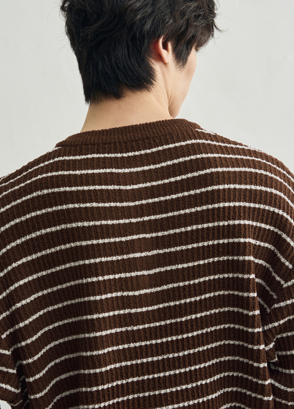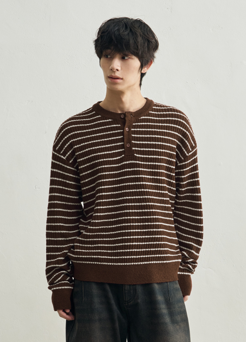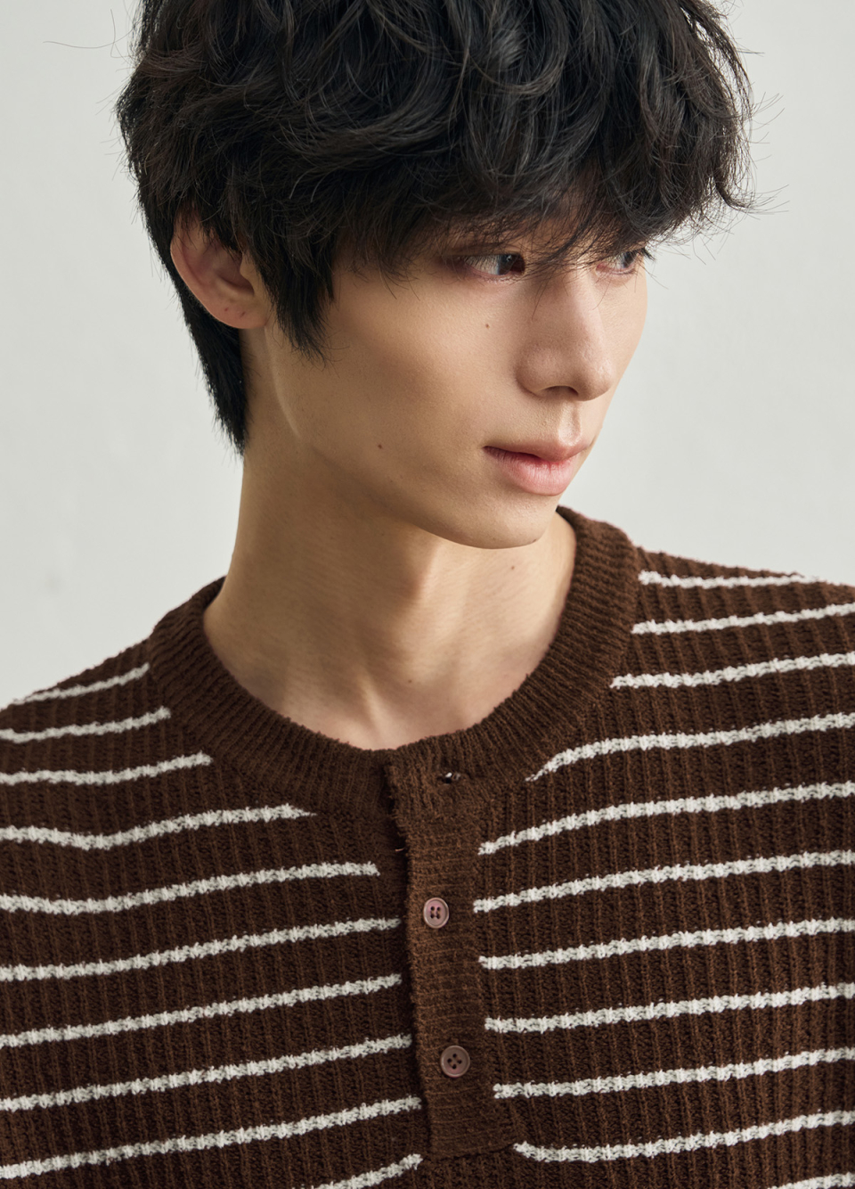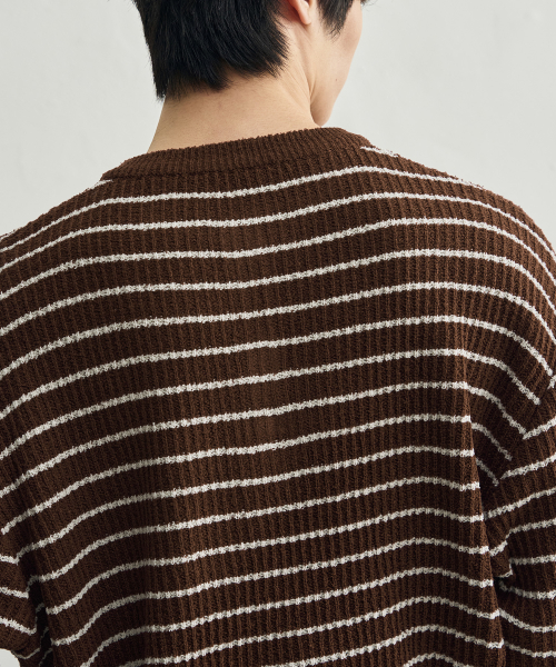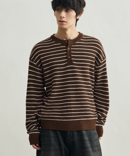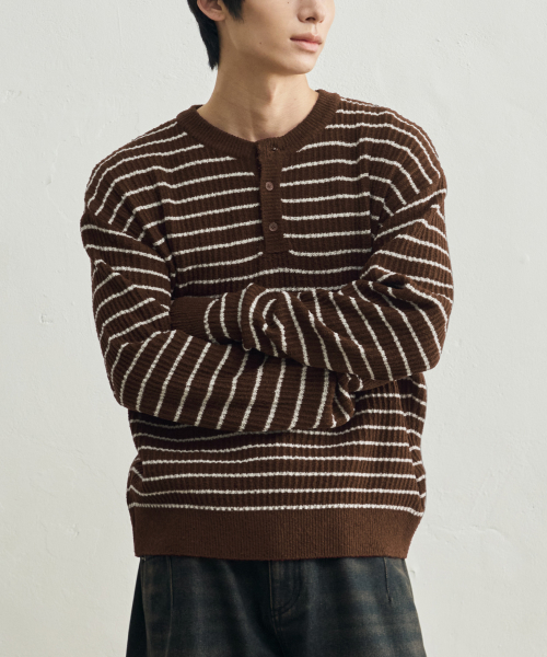 로우 스트라이프 헨리넥 크롭 니트 [브라운]