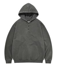 PIGMENT WASHED HENLEY NECK HOODIE (CHARCOAL)