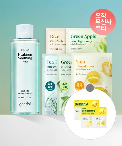 [SET] 구달 순한마스크 5매 + 어성초 히알루론 수딩 토너(25AD) [증정] 청귤듀오샤셰2EA