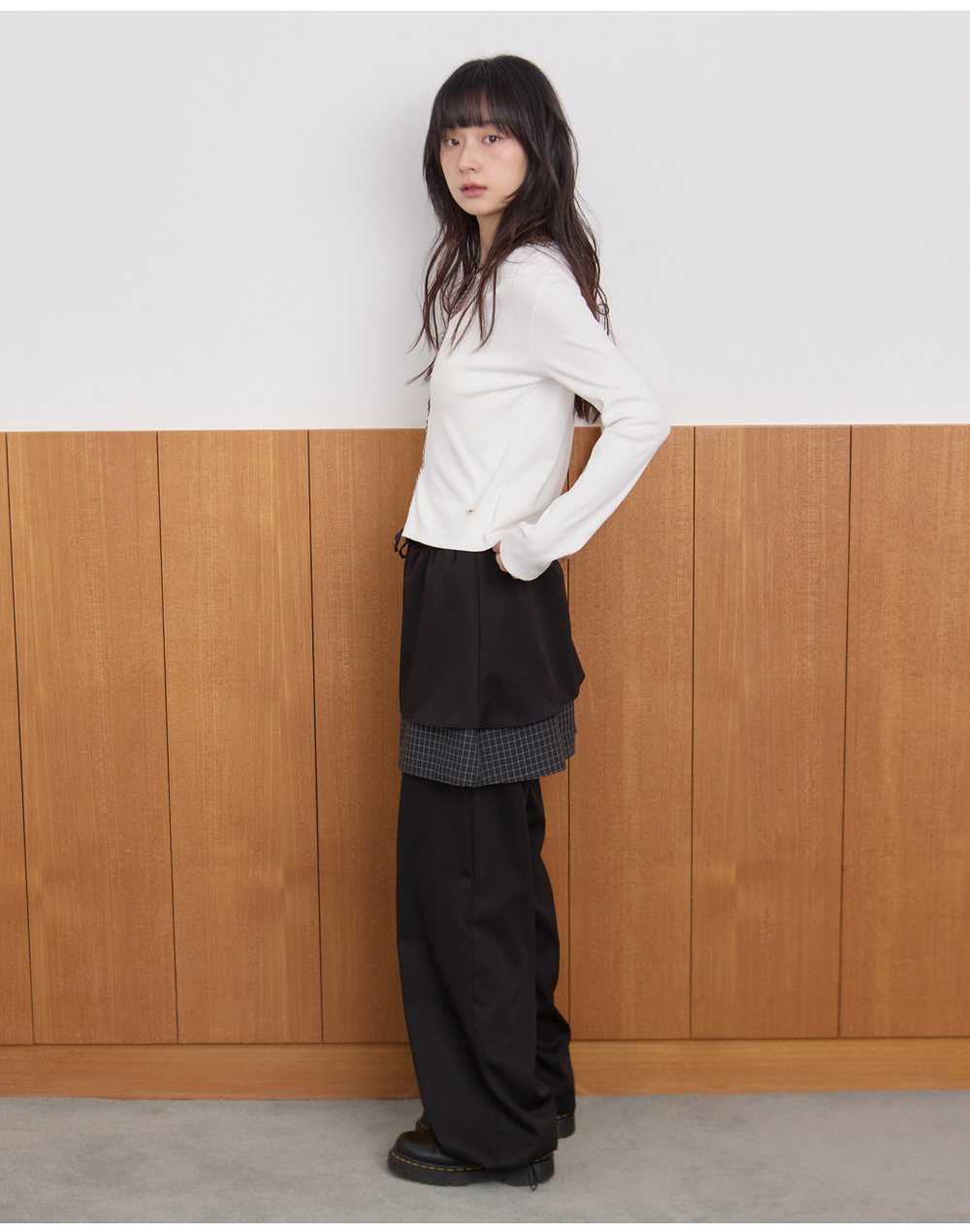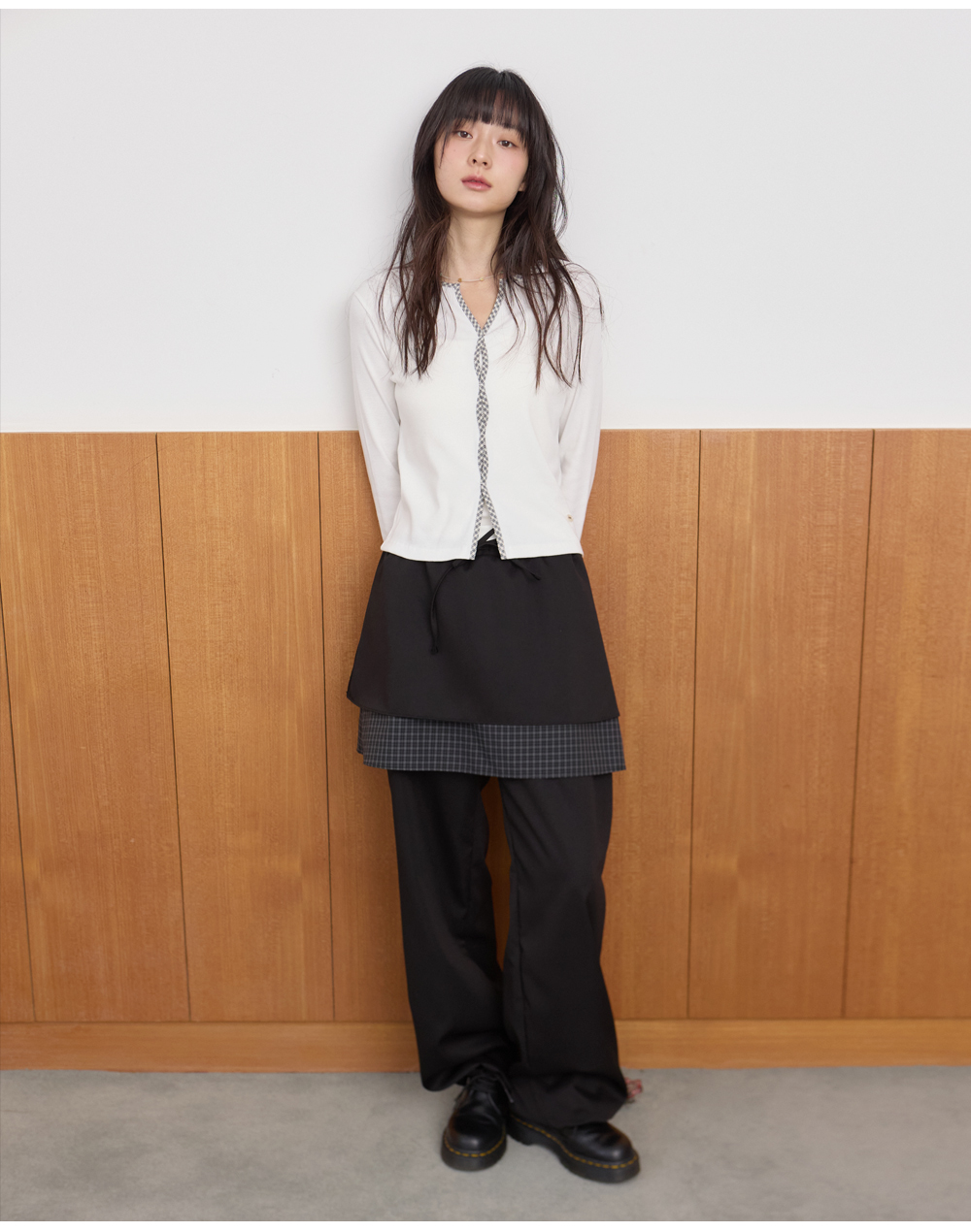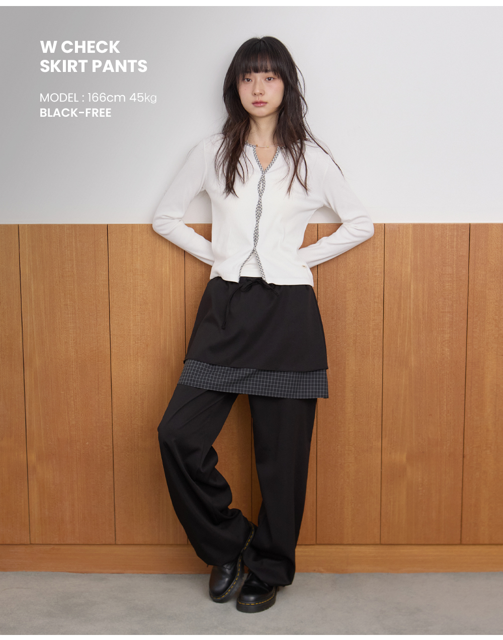 W CHECK SKIRT PANTS [BLACK]
