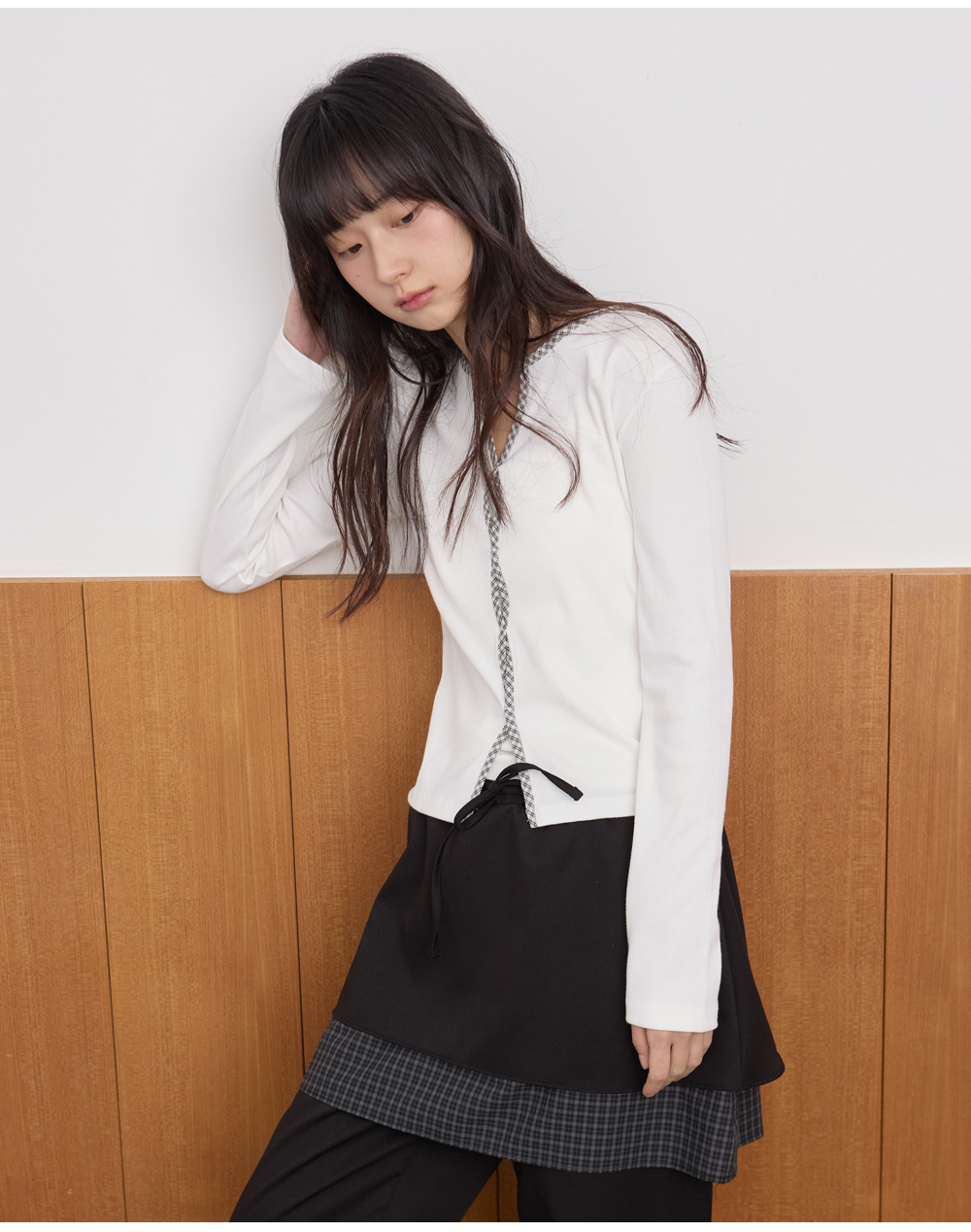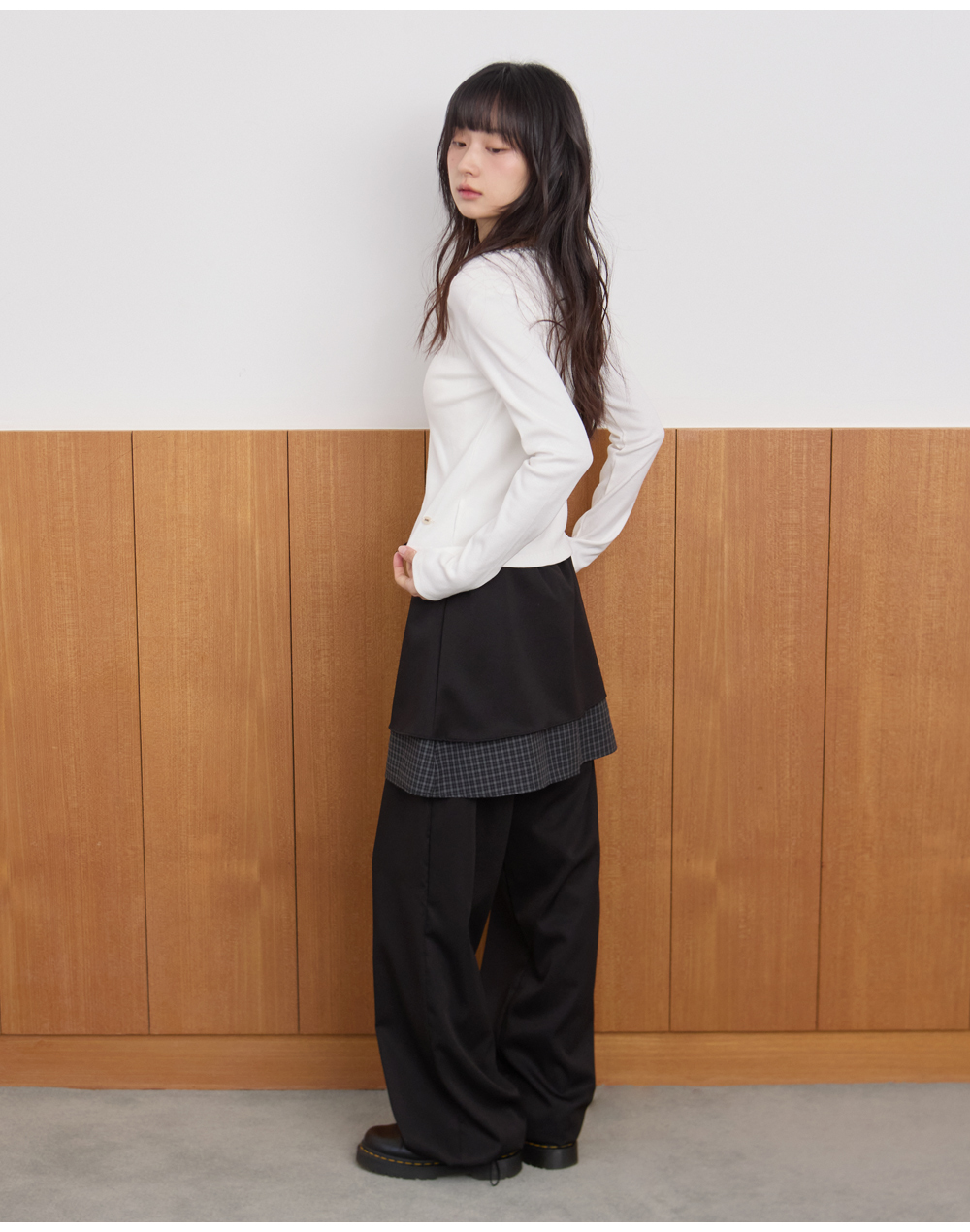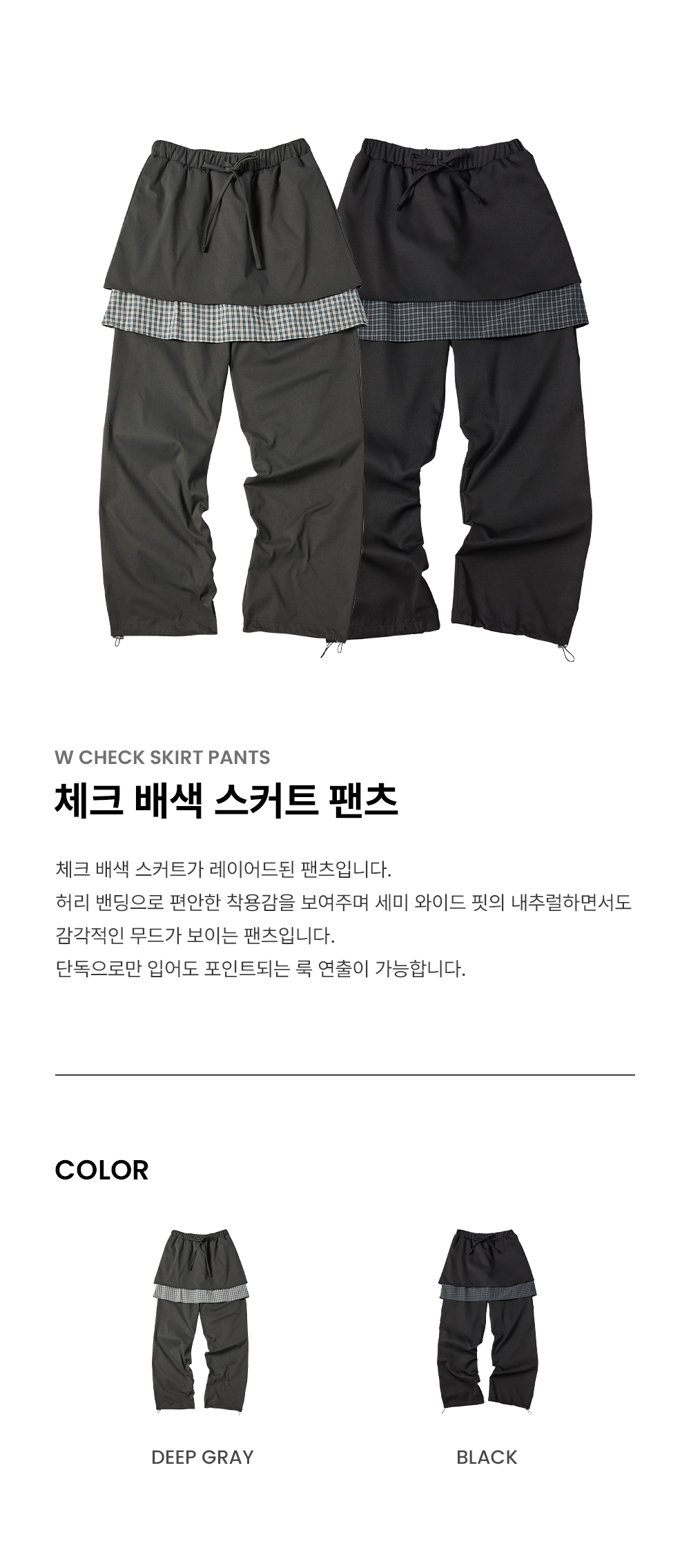 W CHECK SKIRT PANTS [DEEP GRAY]