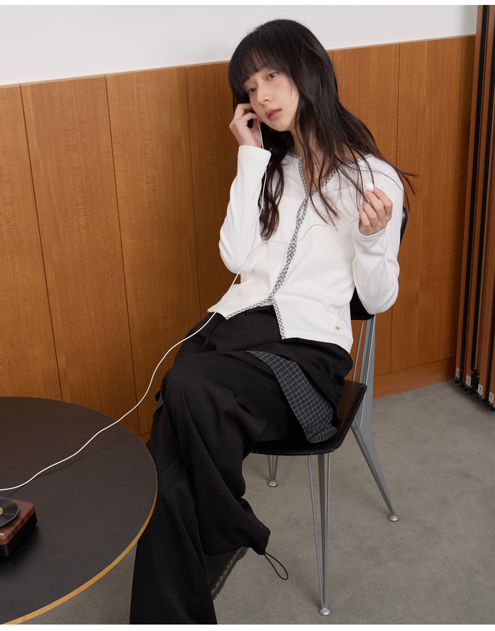 W CHECK CURVED PANTS [BLACK]