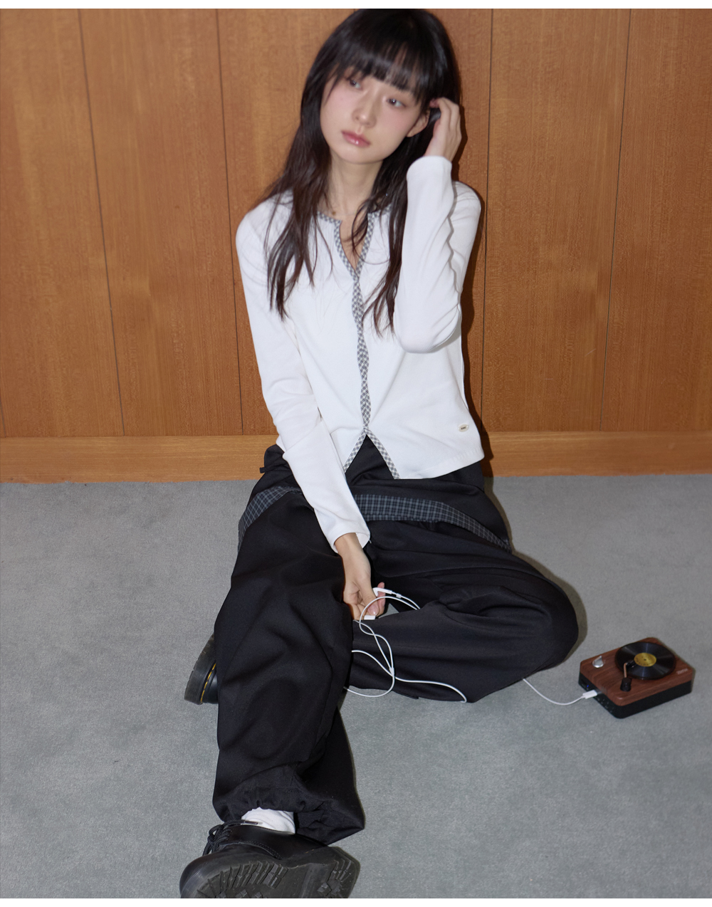 W POCKET CHECK PANTS [BLACK]
