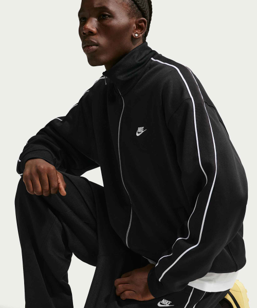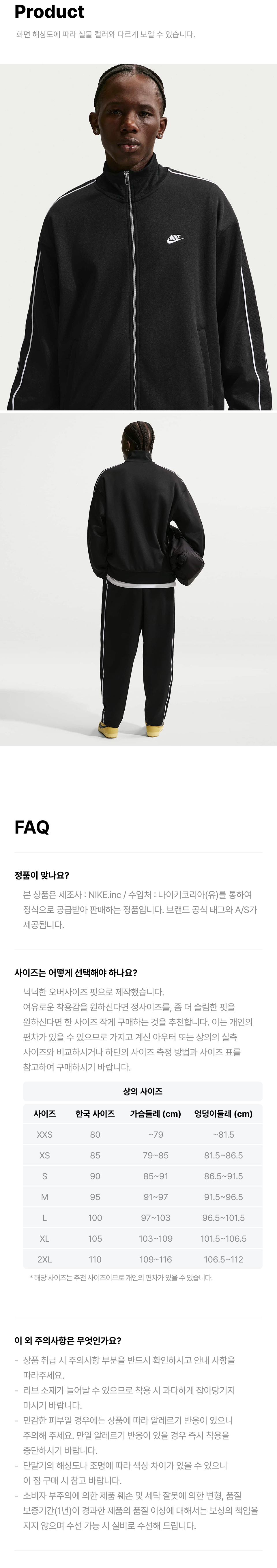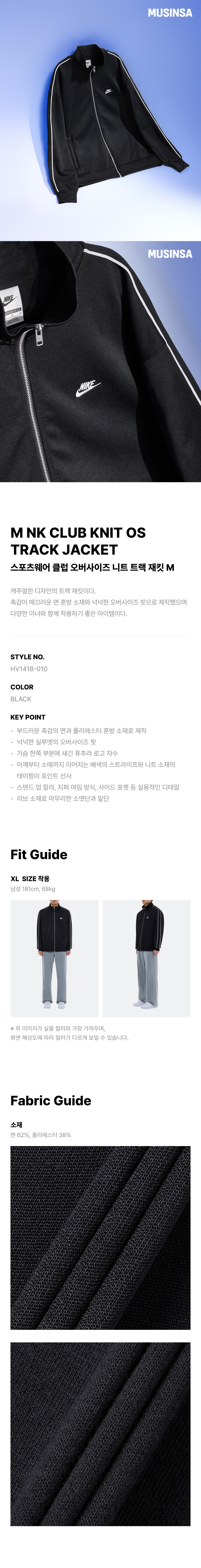 스포츠웨어 클럽 오버사이즈 니트 트랙 재킷 M - 블랙:화이트:블랙:화이트 / HV1418-010